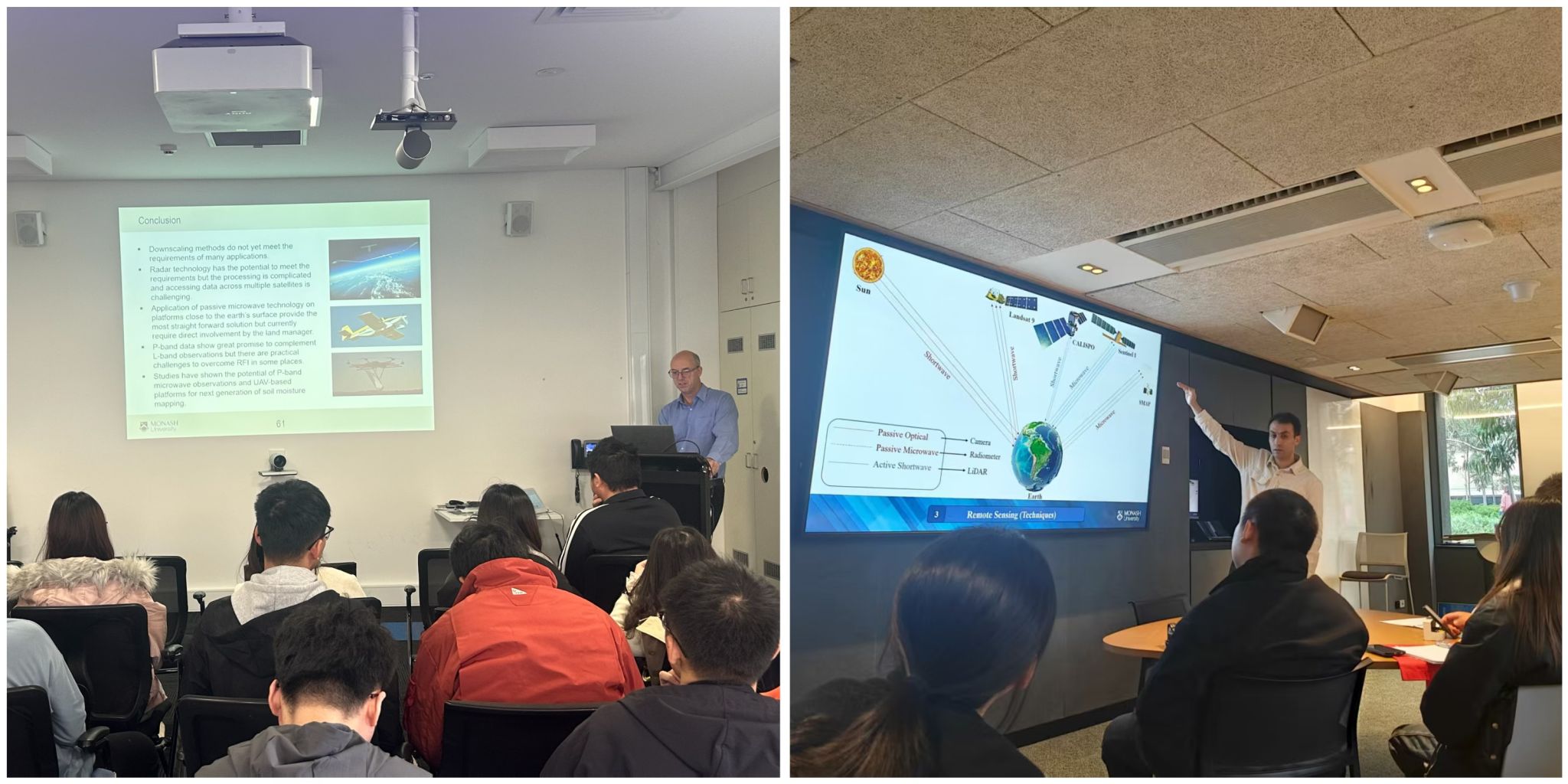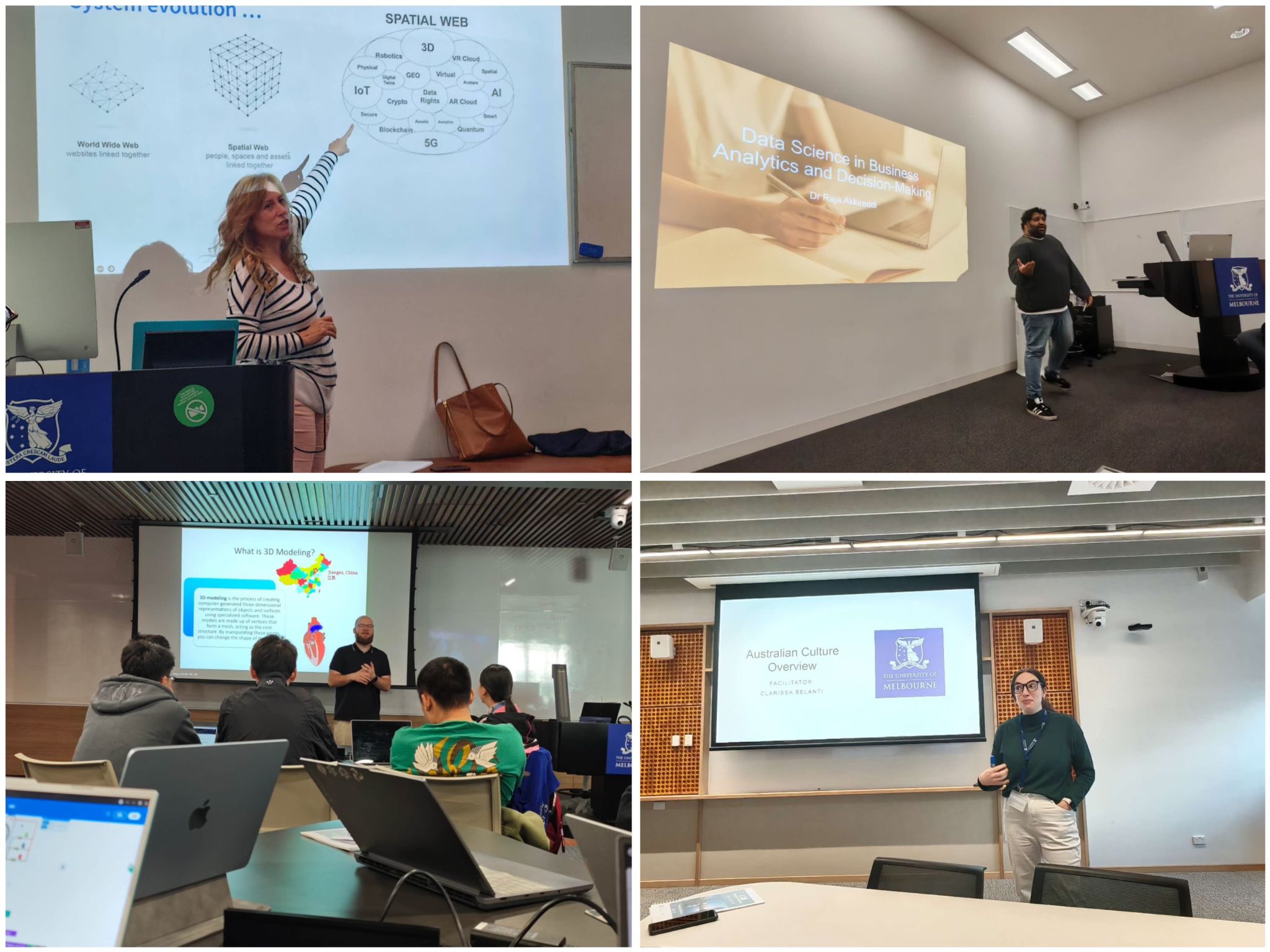 访学期间,同学们先后参加了墨尔本大学、莫纳什大学的多场讲座。在墨尔本大学,Sophie老师围绕领导力AI对时代发展的作用进行了详细阐述,并指导同学们如何解决将AI引入工程后产生的问题。Raja老师以“商业分析和决策力中的数据科学”为主题,深入浅出的讲解了人工智能的发展及商业应用,并与同学们就技术对社会的影响进行了交流。Clarissa Belanti 老师带大家从不同视角了解澳大利亚文化。Tesfaye Molla老师介绍了材料和3D打印相关知识,Peter和Shef老师将理论与实践相结合,指导员工3D打印出自己的设计作品。在莫纳什大学,Jeffrey Walker 教授及其课题组成员为同学们讲授了多种遥感技术在分析土壤含水量方面的原理与应用知识。Ford Brakhasi老师介绍了遥感技术在环境监测与灾害管理方面的应用。