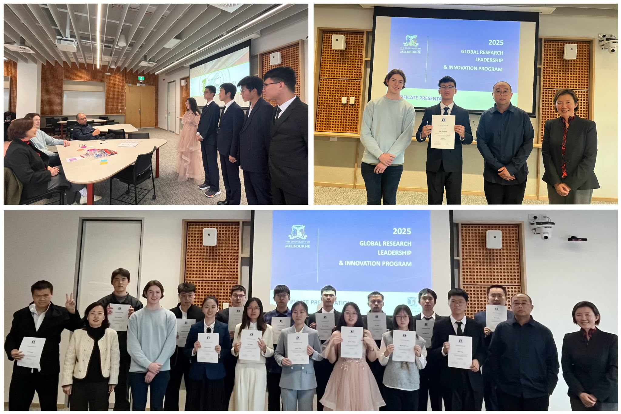 8月15日,在墨尔本大学,项目举行了结业仪式,分小组每位同学汇报展示了自己的学习成果与见闻收获。Julia Gong、Owen Yang、James三位老师对各位同学这两周的学习表现给予肯定,并颁发了结业证书。