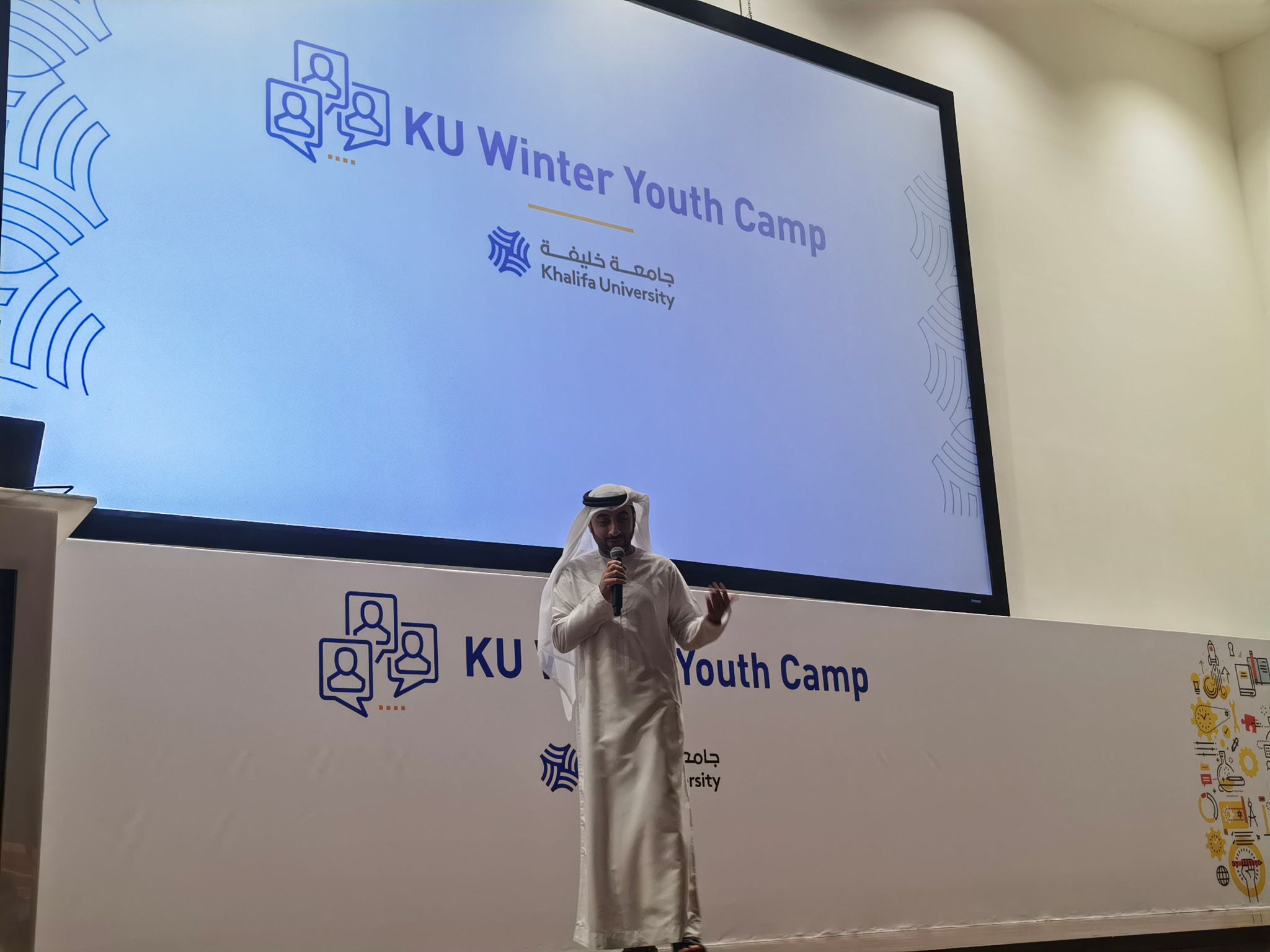 第一天的开营仪式让同学们对哈利法大学有了更加全面的认识。经过了几天的学习与生活,同学们渐渐适应了这座城市。作为阿联酋的首都,阿布扎比多元而充满活力,它拥有众多展现人类迁移、丝路贸易、沙漠、航海等悠久历史的名胜古迹。这里有让人叹为观止的清真寺、豪华壮观的宫殿、全球闻名的主题公园、精美绝伦的博物馆,还有无尽的沙漠和海滩......同学们对之后的冬令营活动充满期待。