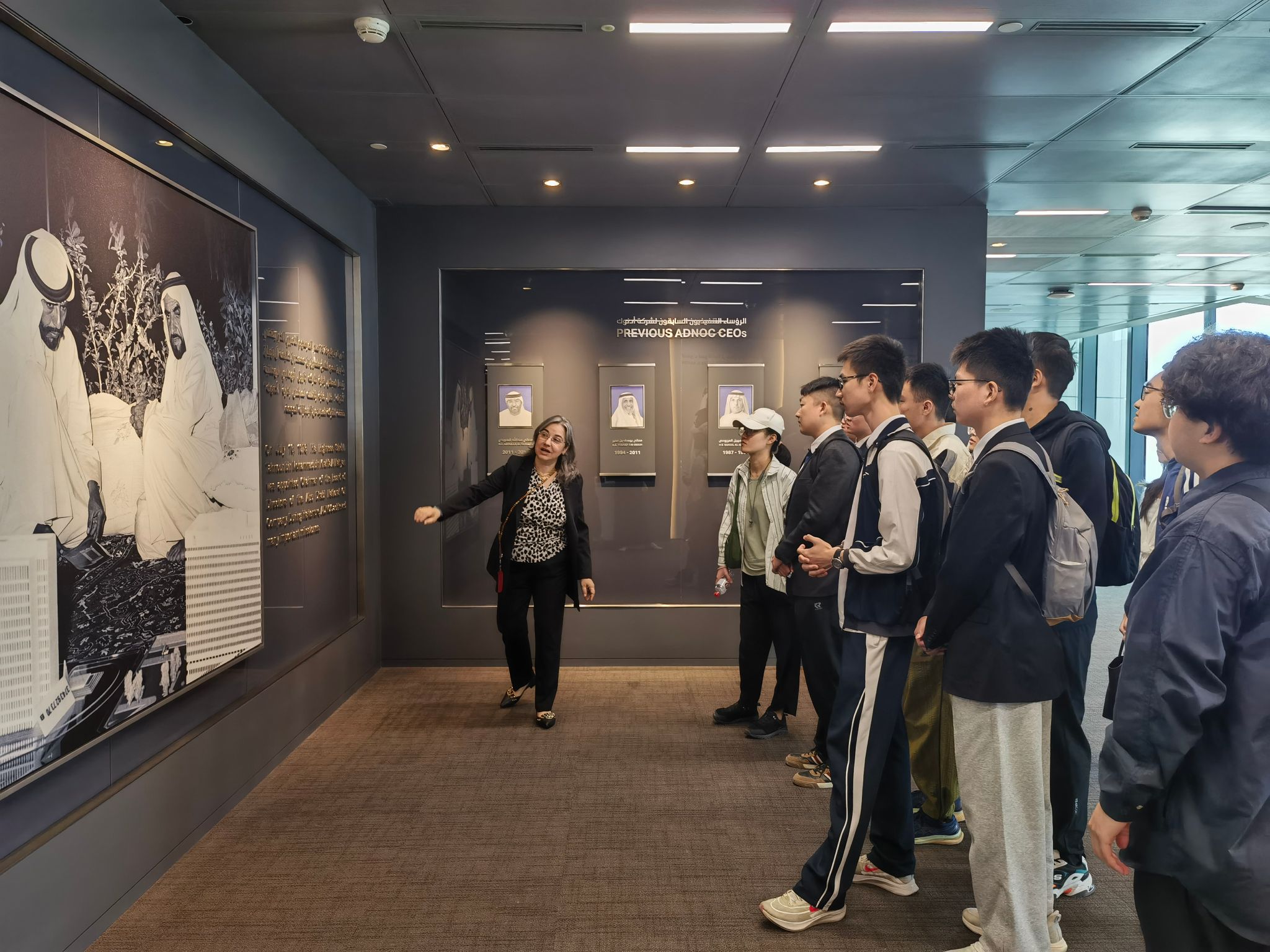 期间,全体冬令营同学受邀参访了全球能源的佼佼者——阿布扎比国家石油公司(ADNOC)。随着企业代表生动地讲解,同学们深入体会到了世界一流企业的发展历程。随后,同学们走进公司的中央信息控制中心,进一步了解了大数据智能管理的应用、挑战和应对策略,对于长期在校园环境内学习生活的同学们而言,是一场别开生面的体验。