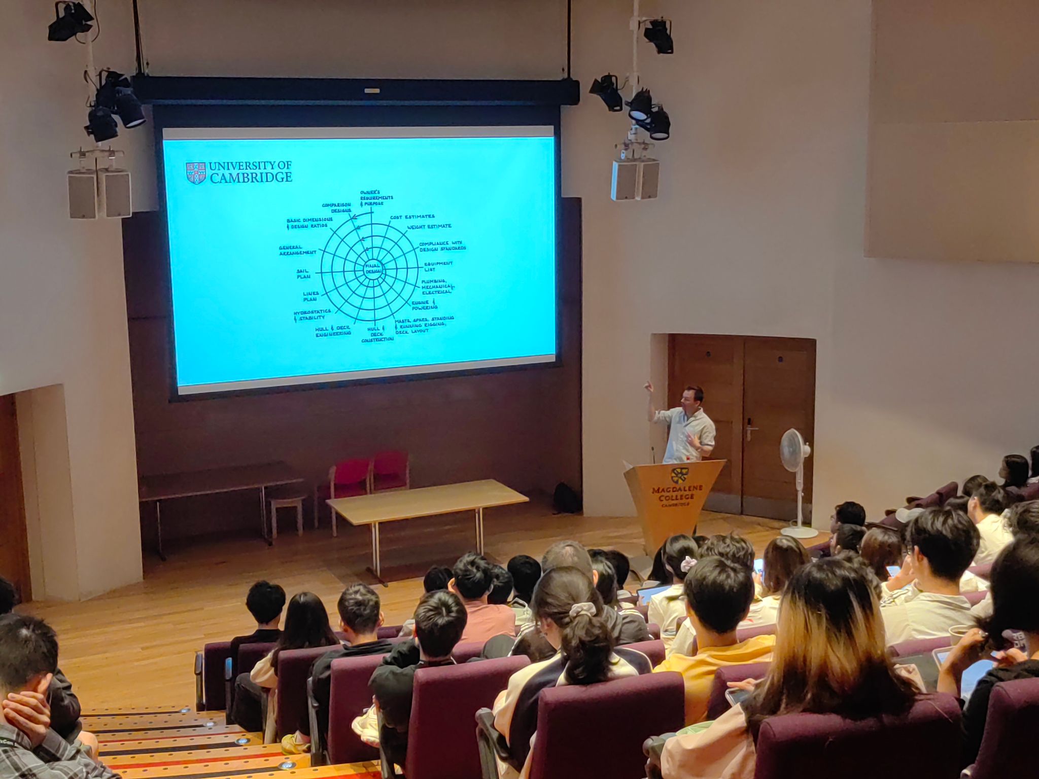 本次课程由剑桥大学工程系James Ward教授主讲,课程名为“系统设计+:一种设计系统的系统化方法”。在本次课程中,同学们分成小组,每个小组自行选题,在James教授以及同系的另外五名教授的指导下,设计优化一个复杂的系统工程。