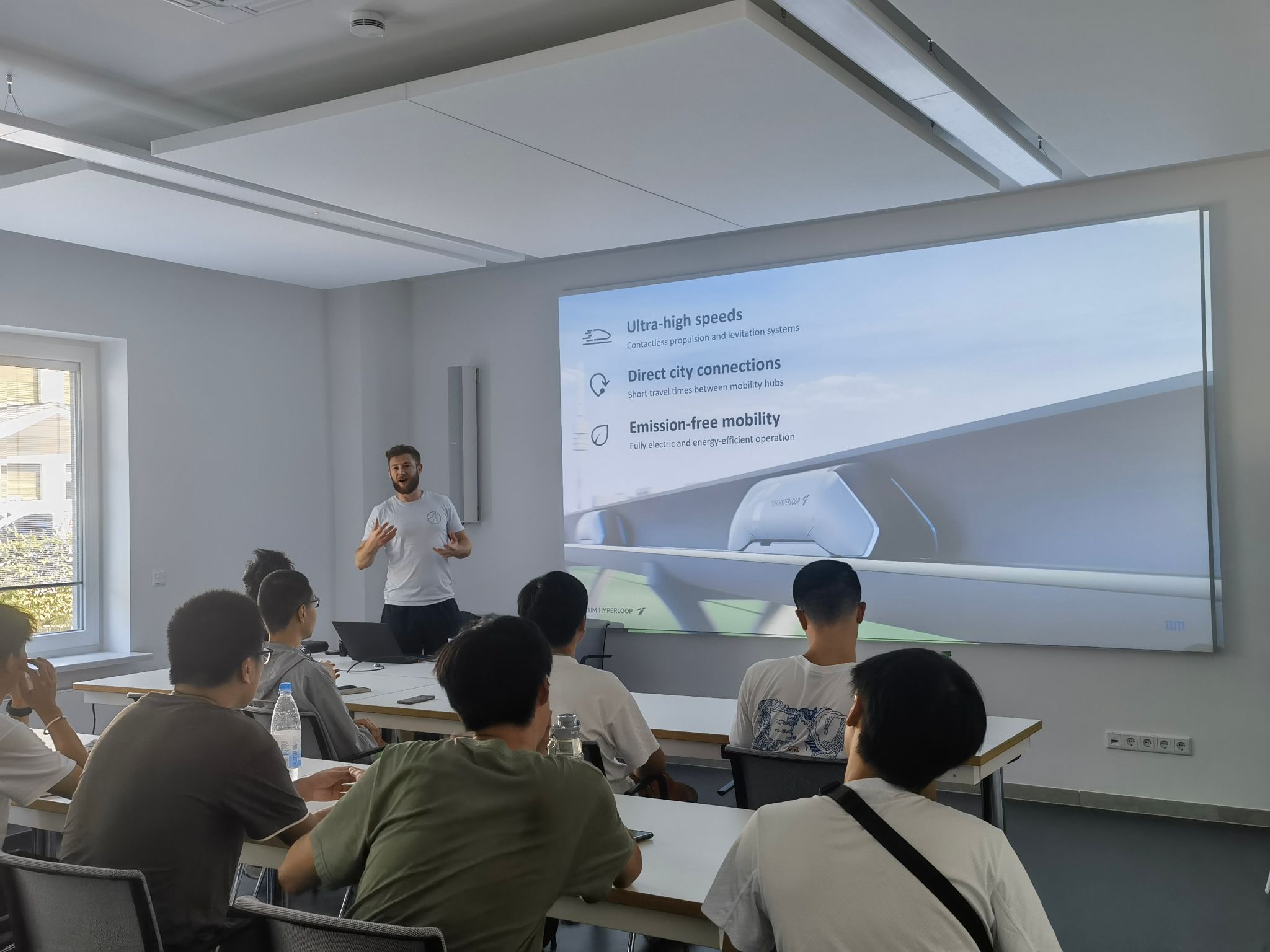 研学期间,同学们分别前往了莱布尼茨中子源中心、全固态电池实验室、超级高铁Hyperloop、宝马博物馆及宝马世界等研究中心和企业进行了参观交流。同学们深入了解到了,相比传统的液态锂离子电池,全固态电池具有更高的能量密度、更安全的性质和更灵活的结构设计,使得其在eVTOL及新能源汽车中具有良好的应用前景。在宝马博物馆,同学们了解了德国汽车制造产业发展历史,感受到了其先进的智能制造生产技术与可持续发展理念。超级高铁Hyperloop展示了慕尼黑工业大学在高速运输领域的前沿成果,其自主设计的磁悬浮和推进系统引发了同学们的深入交流。