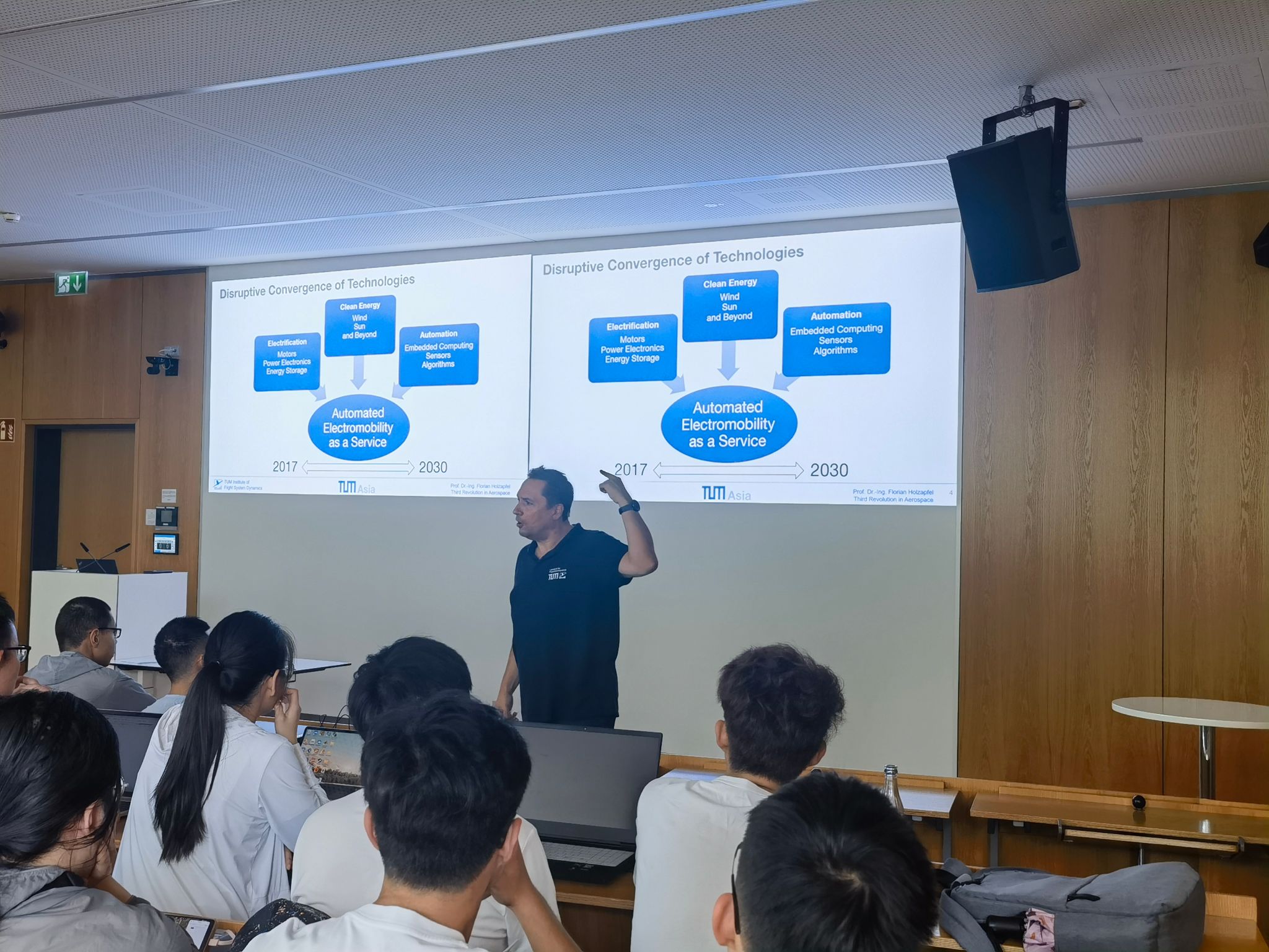 慕尼黑工业大学航空航天公司围绕航宇力学主题,制定了关于航空航天新兴趋势、飞行器新能源、网络交通系统与控制等核心课程。Florian Holzapfel教授详细讲解了关于新型飞行器eVTOL的概念与发展历程。同学们了解到与传统飞行器设计相比,eVTOL的设计、功能以及控制原理都有较大差异,还面临着较大挑战和不确定性。随后,同学们以“Sustainable Mobility”为主题开展了分组研讨,分析了可持续性交通存在的风险、技术难点等,探讨了解决相关问题的新思路和新方法。此外,Constantinos Antoniou教授带领同学们研究了城市空中交通(UAM)的可行性,分析了UAM在紧急医疗服务和区域运输中的应用前景,讨论了UAM的未来发展方向。Ilkay Yavrucuk教授介绍了与直升机相关的动力学以及控制问题,通过与eVTOL进行对比,探讨了目前空中交通系统的发展趋势及需要突破的技术难点。通过一系列核心课程的学习,有效提升了同学们对当前城市空中交通领域的新兴趋势所面临的新方法、新技术的认识与理解,启发了同学们的创新思维。