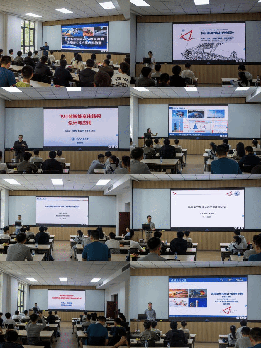 公司优秀院友朱继宏教授介绍团队基本情况,并做报告,朱继宏以自身求学经历为切入点,强调课余科研探索对创新能力培养的关键作用,寄语学子把握实践平台机遇。随后的学术报告中,七位青年教师分别围绕拓扑优化设计、智能材料应用、数模驱动分析、增材制造技术、生物力学研究、复合材料成型优化及高性能结构设计等领域,展示了跨学科前沿成果与技术突破。