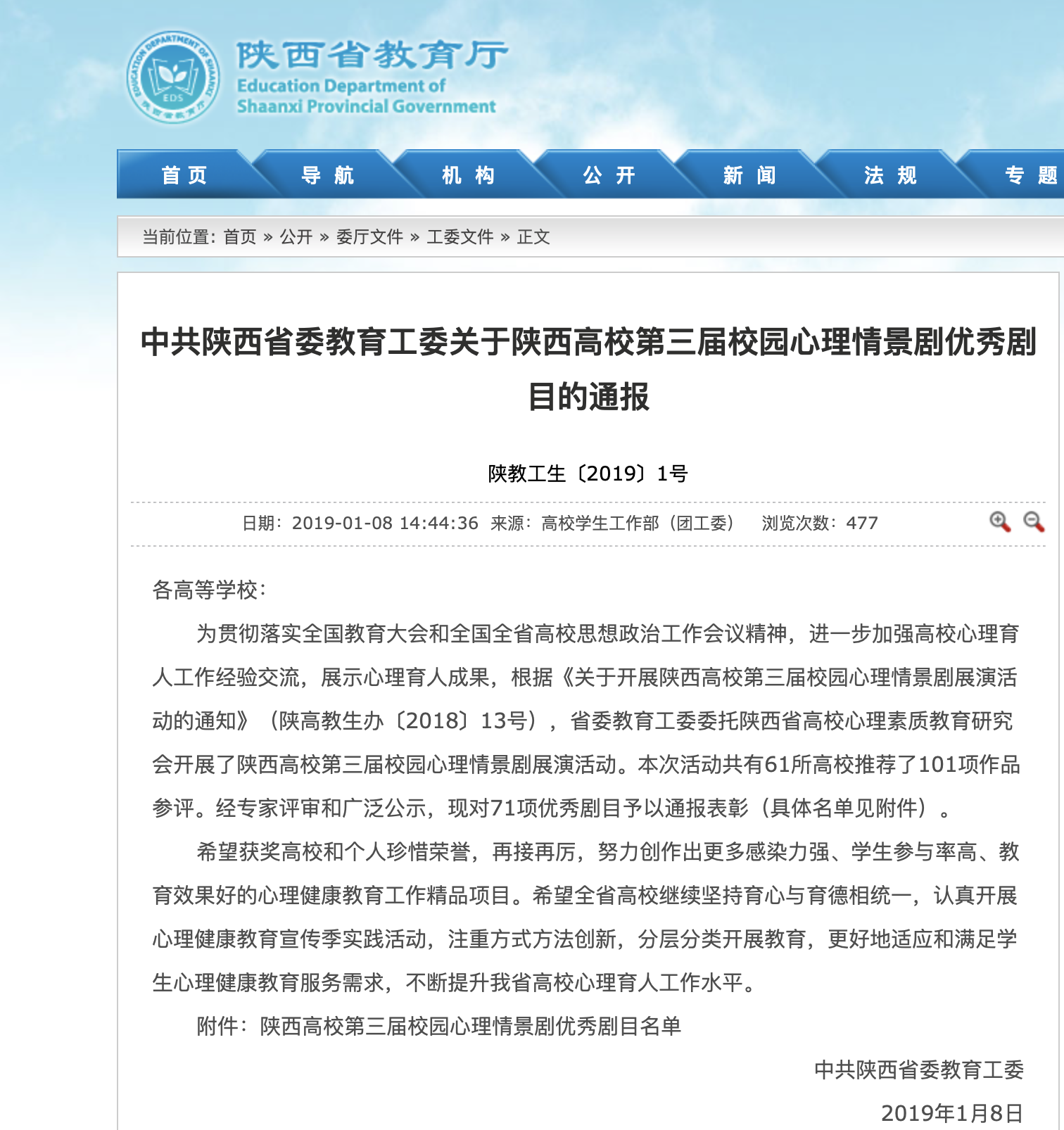美加墨世界杯官方网站心理剧作品获陕西高校第三届校园心理情景剧优秀剧目一等奖