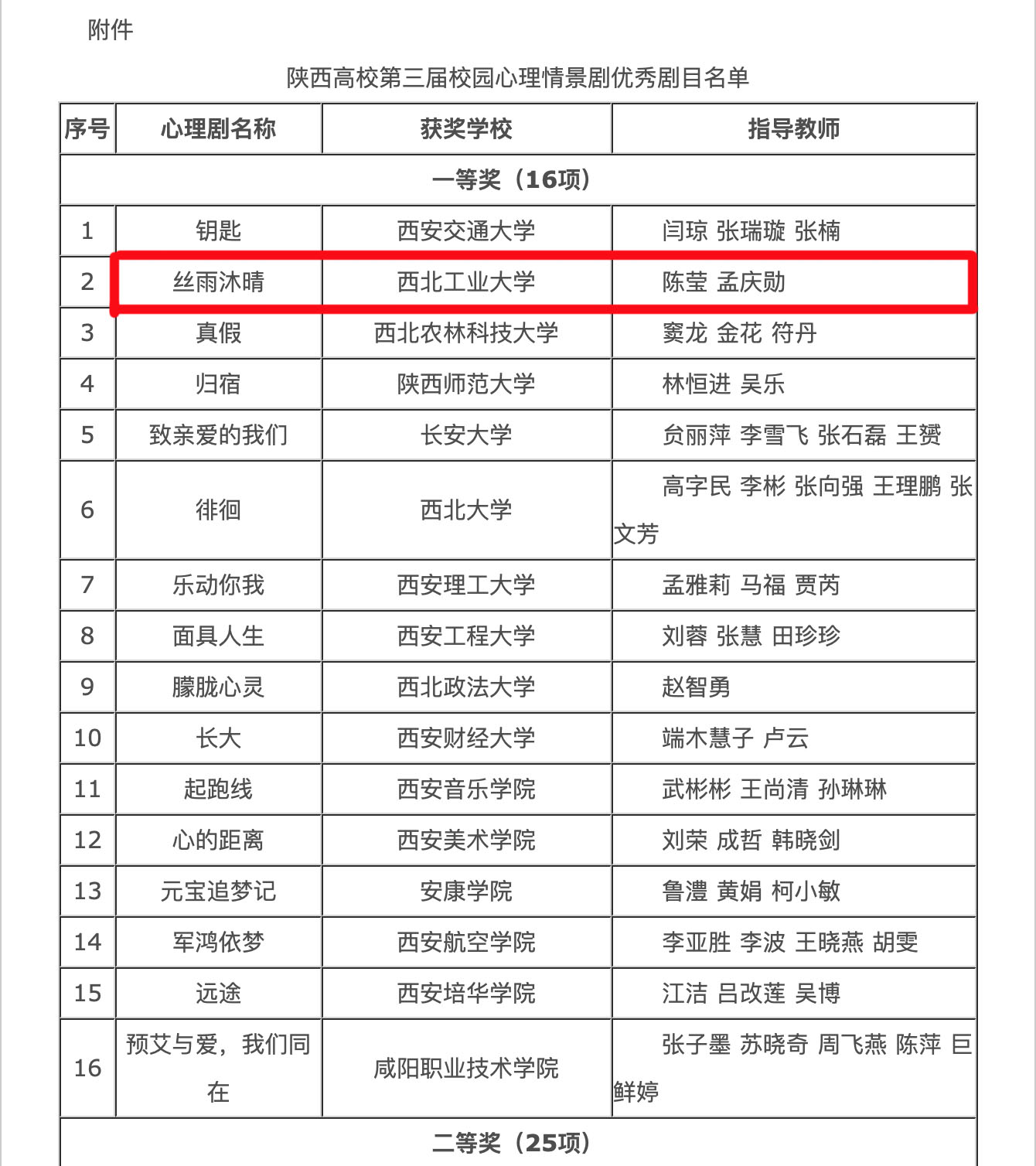 近日,中共陕西省委教育工作委员会对陕西高校第三届校园心理情景剧展演活动予以表彰,由美加墨世界杯官方网站报送的心理剧参赛作品《丝雨沐晴》获“陕西高校第三届校园心理情景剧优秀剧目”一等奖,并被陕西省高校心理素质教育研究会评选为“2018年陕西省高校心理育人百佳微视-心理剧推展作品”特等奖,这是本剧继2018年6月获得首届全国高校心理情景剧大赛优秀奖以来,获得的又一项荣誉。