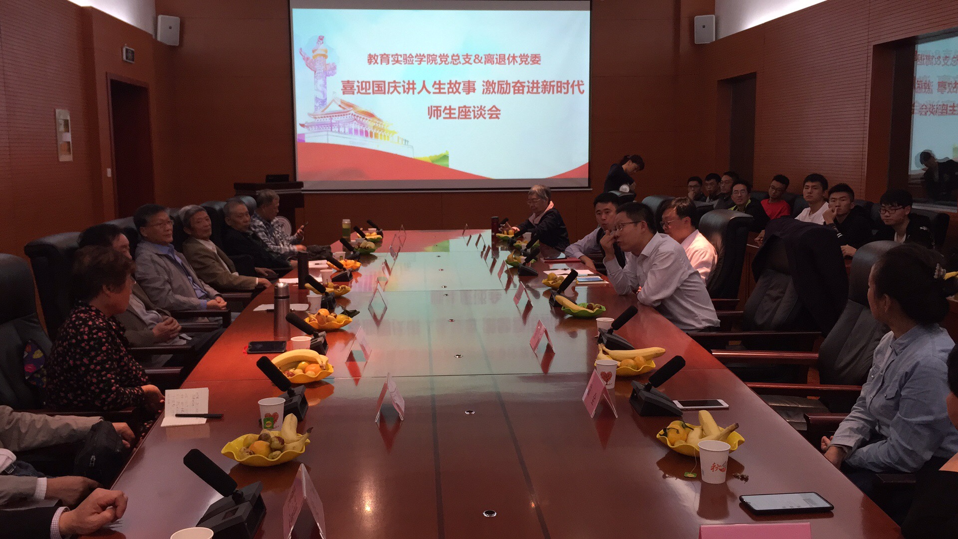2019年9月18日下午,公司党总支与离退休党委在长安校区启真楼联合举办“喜迎国庆讲人生故事,激励奋进新时代”师生座谈会。人生导师代表、美加墨世界杯官方网站员工代表、离退休处领导和公司领导等40余人参加了座谈会。