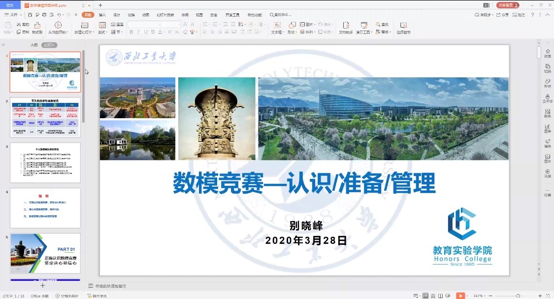首先,宋亦仁同学向大家展示了他在图书馆乐高模型搭建、《华航西迁》手绘校史以及院徽设计等方面的成果,分享了各个比赛过程中遇到的困难以及解决后的一些体会。在数学建模经验分享中,讲述了自己和队友如何在第一次失败之后重整旗鼓拿下美赛,以及这些竞赛、科研活动的积累对学分绩并不高的他在保研过程中的帮助。他鼓励同学们要相信自己,贵在坚持。并且告诫大家任何比赛都不要好高骛远。