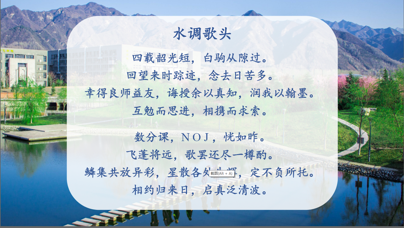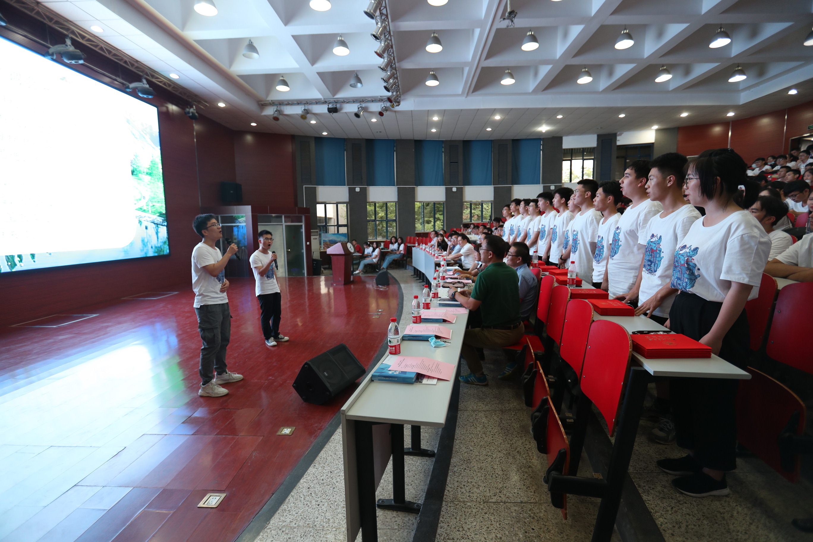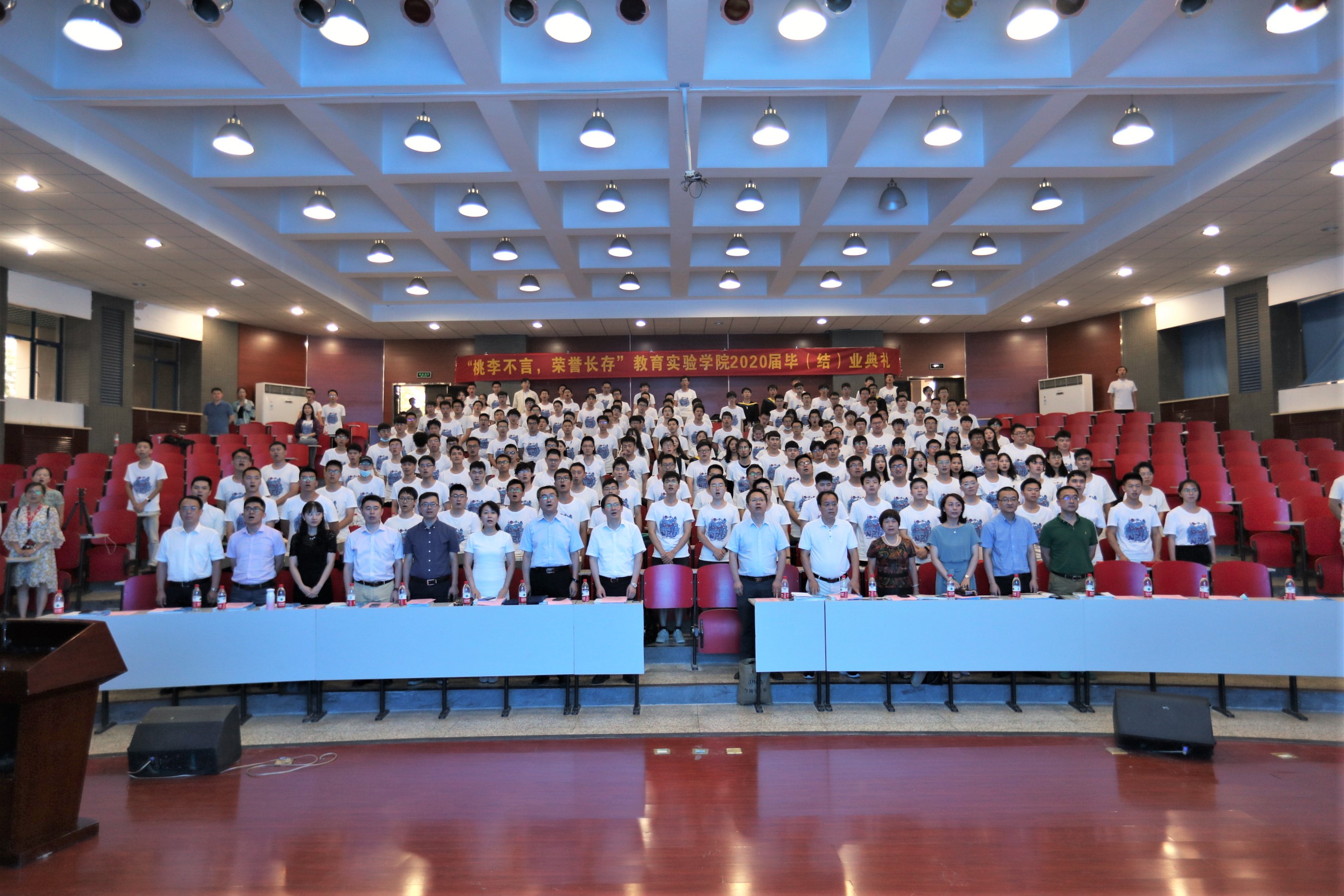 “四载韶光短,白驹从隙过。”全体毕业生高声朗诵毕业生原创的填词作品《水调歌头》。大家“相约归来日,启真泛清波。”