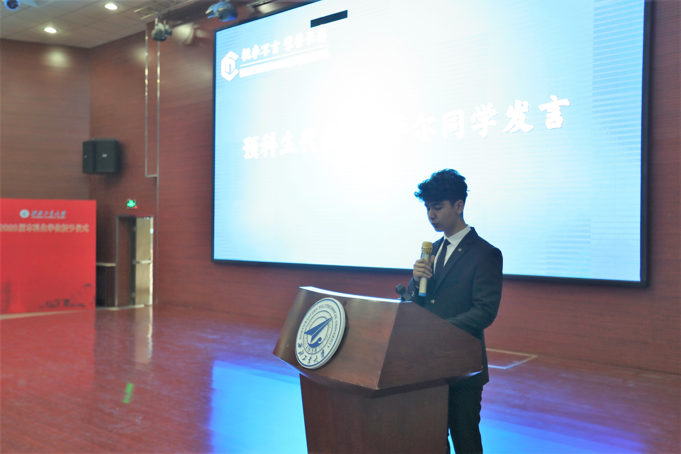 本科生代表姚卓尔和预科生代表凯萨尔同学分别进行发言。姚卓尔讲述了他在西工大丰富的成长经历,难忘恩师们的无私帮助、同学们的深厚情谊和父母的默默付出,四年的点滴记忆也将激励他在今后的日子里披荆斩棘,乘风破浪。凯萨尔同学回忆了一年预科的改变,全方面的发展让他的预科生活更加充实,并表示在接下的工大时光中他将更加努力奋进,实现人生价值。