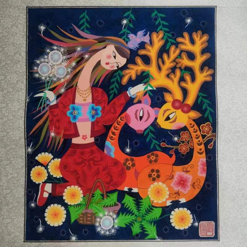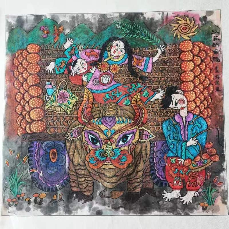 有创新才能有发展。卢凤霞女士深知非遗的现代化意义,对桦甸农民画进行创造性转化、创新性发展,在农民画中融入国画、水墨等绘画形式,采取干差法、油脂法等方式,使农民画更加具有层次感、厚重感。