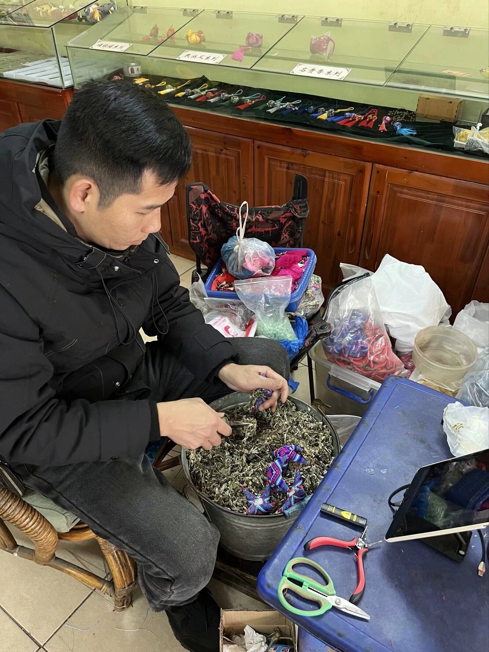 工匠正在进行中药材的填充
