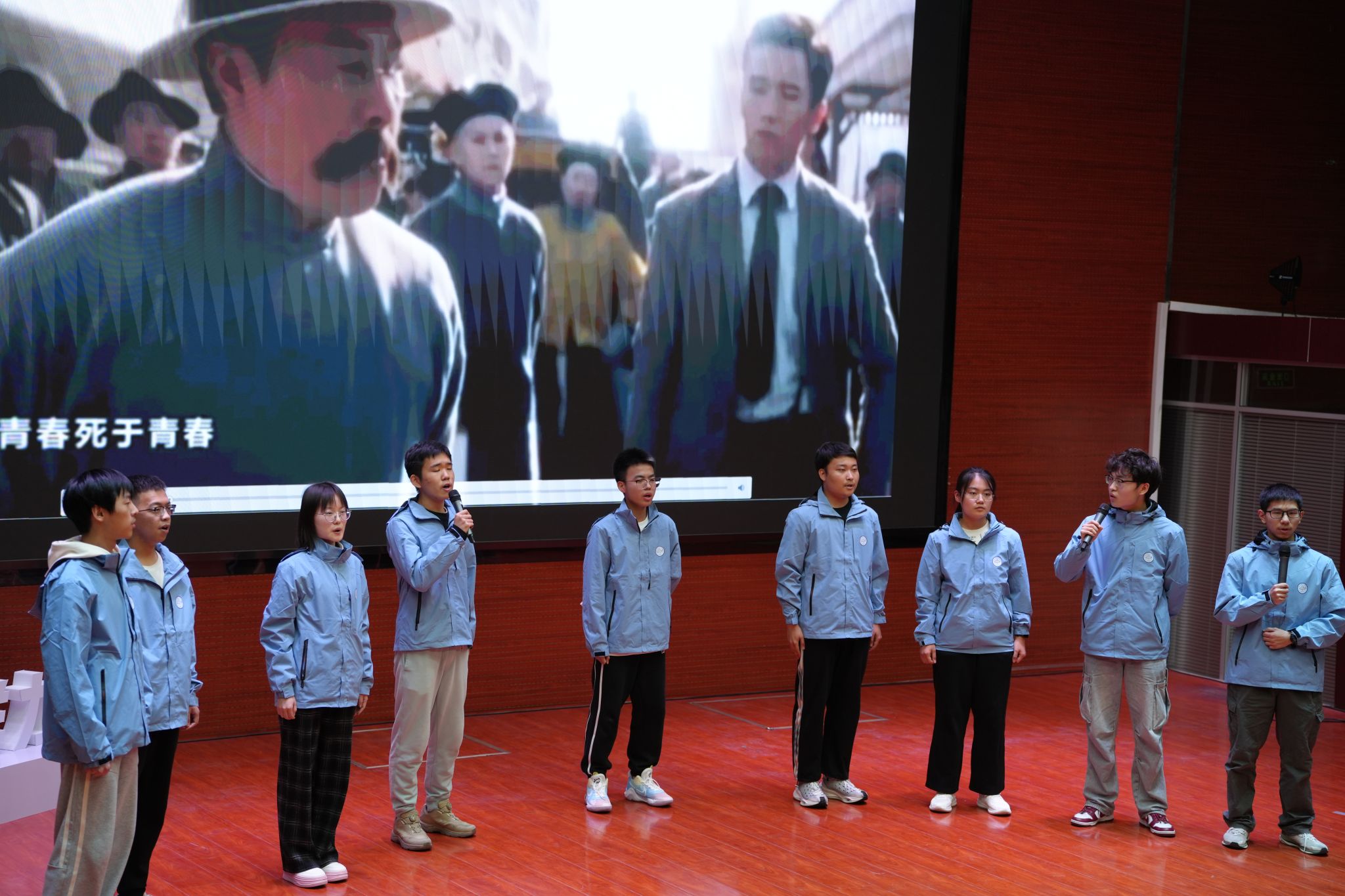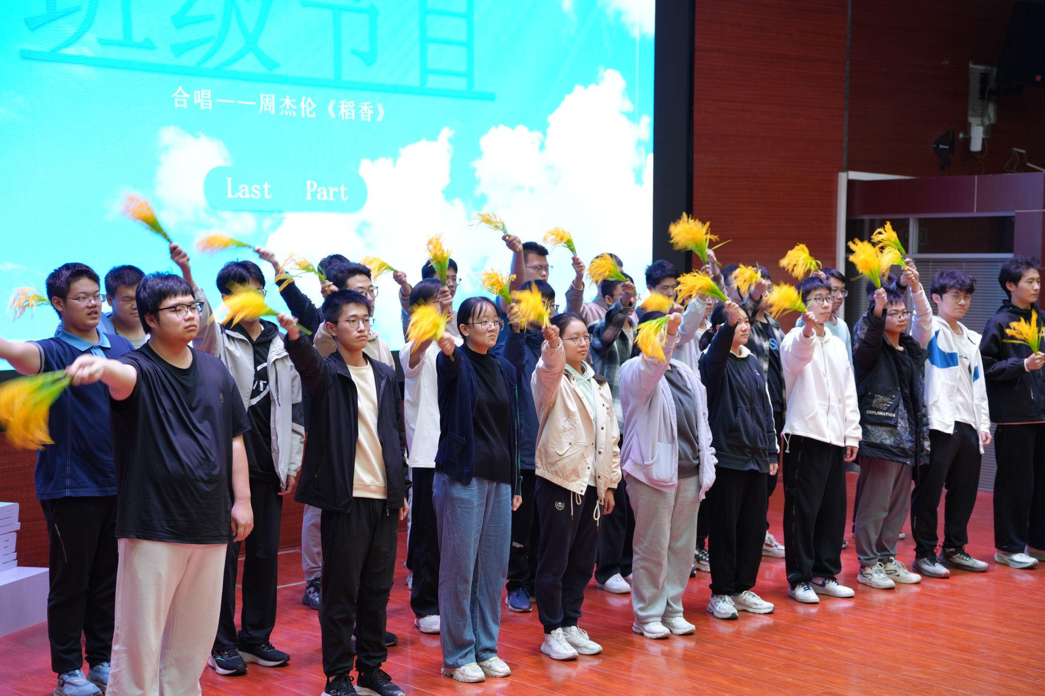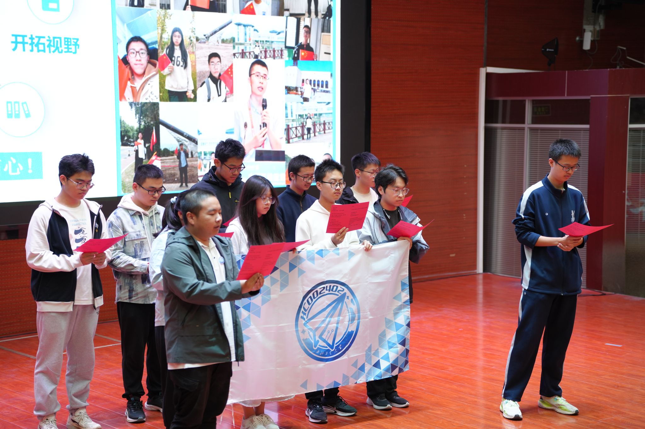 第二环节,各小班通过合唱、话剧、朗诵等丰富多彩的展现形式,竞相展现班级的才华与风采。HC002404班以铿锵有力的合唱《平凡之路》震撼心灵,HC002408班以精湛绝伦的话剧表演扣人心弦,HC002402班的诗歌朗诵《青春》更是深情细腻。多个班级轮番登台,才艺比拼,班级成员紧密合作,共同呈现出精彩纷呈的表演,促进了班级间的交流与融合,增进了班级间的友谊与理解。