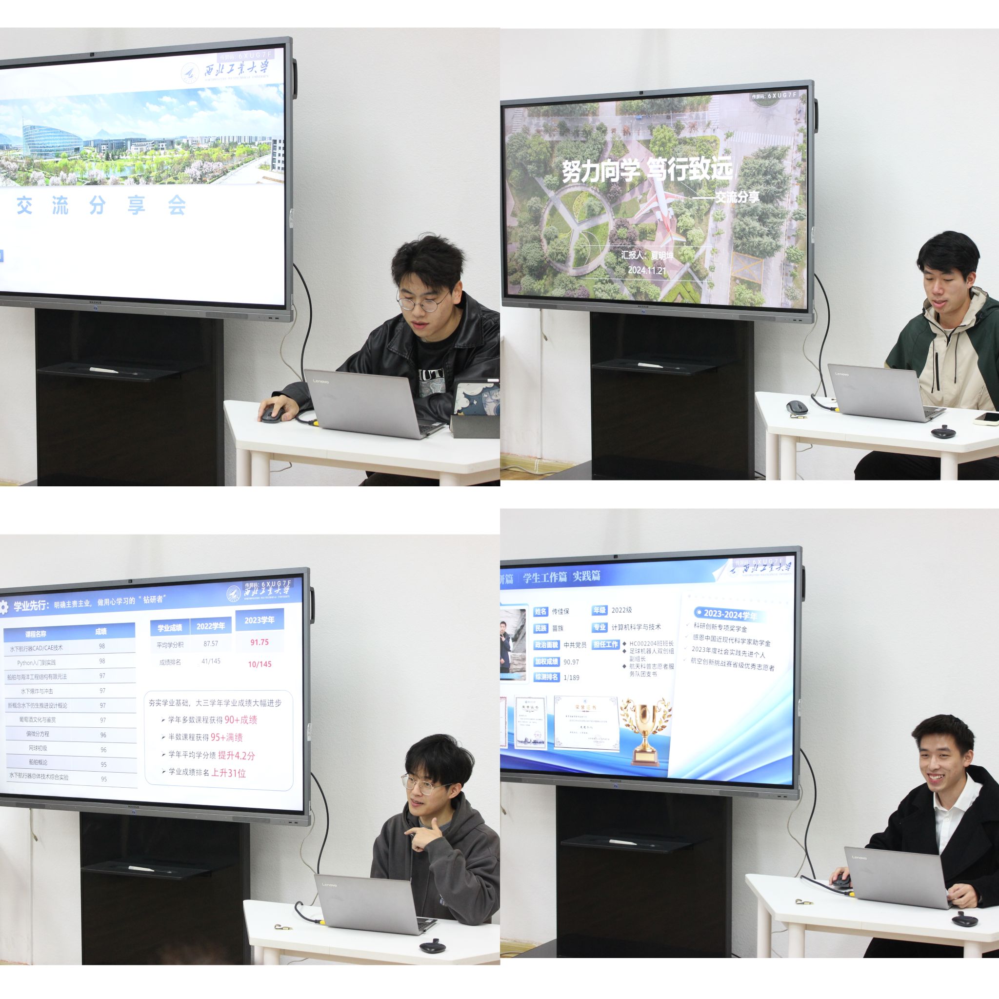 分享会上,优秀学子们围绕多个方面展开深入交流。汪仔豪同学分享了快速适应老员工活的秘诀,强调走适合自己的发展道路的重要性;李旭东同学鼓励大家积极探索个人兴趣和热爱领域,以赛促学,实现理论与实践的有机结合;传佳保同学分享了自己成长探索的历程,鼓励同学们保持积极向上的心态,勇往直前。