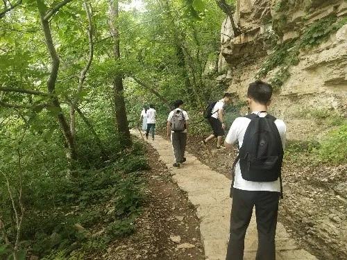随后,实践队重走九间棚山路,参观了房屋旧址以及战天斗地的伟大工程。