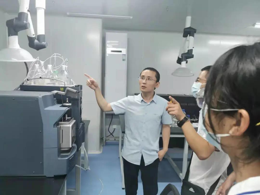 在这之后,实践队队员在研究人员的带领下,参观了公司的部分实验室,了解相关仪器原理及作用。例如,获取液相、液质的高速离心机,超高效液相色谱(UPLC)等,在和研究人员的交流中,队员们对生物检验兴趣大大提高。