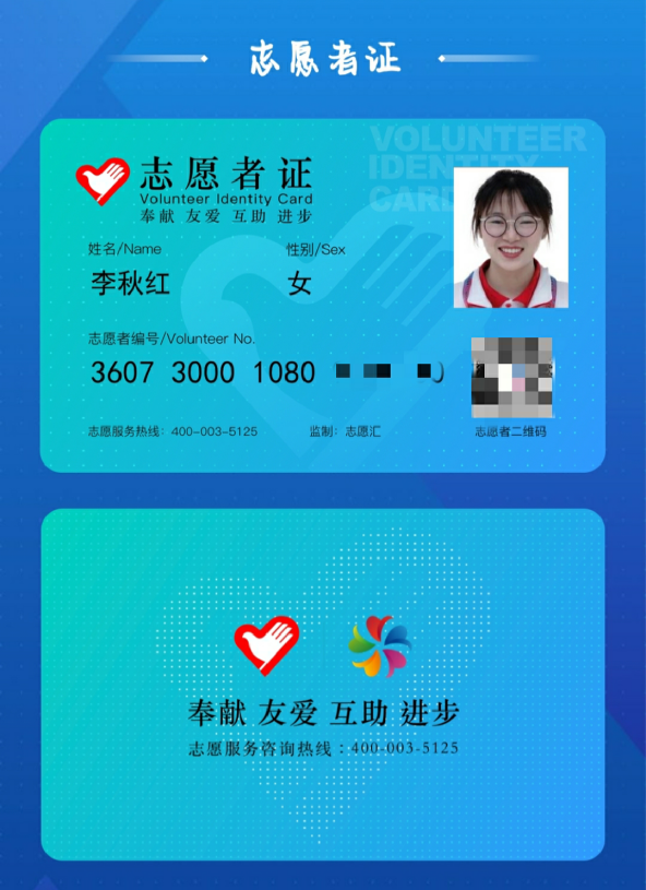 在志愿服务的路上,会遇见很多困难,但总有人可以替你驱走所有阴霾!我想在日后的志愿服务活动中,将笑容、爱和希望传递给每一个人。口罩会遮住我的笑容,但志愿者最美的名片会通过每一位认真负责的志愿者传递。”