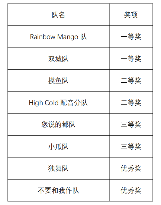 经过评委打分,第十二届“影音风采”英文配音大赛获奖名单如下: