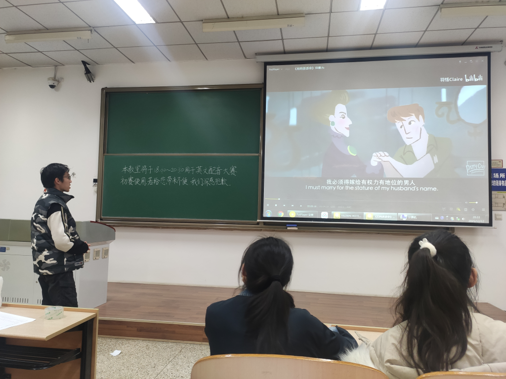 本届英文配音大赛共分为初赛及决赛两轮。初赛于2021年12月12日举行。来自全校的二十余只队伍带来了他们精彩的配音表演。评委综合发音流利度、准确度、感情饱满度、时间轴契合度、情节内容丰富度等方面对各支参赛队伍进行了严谨打分,共有八支队伍晋级决赛。
