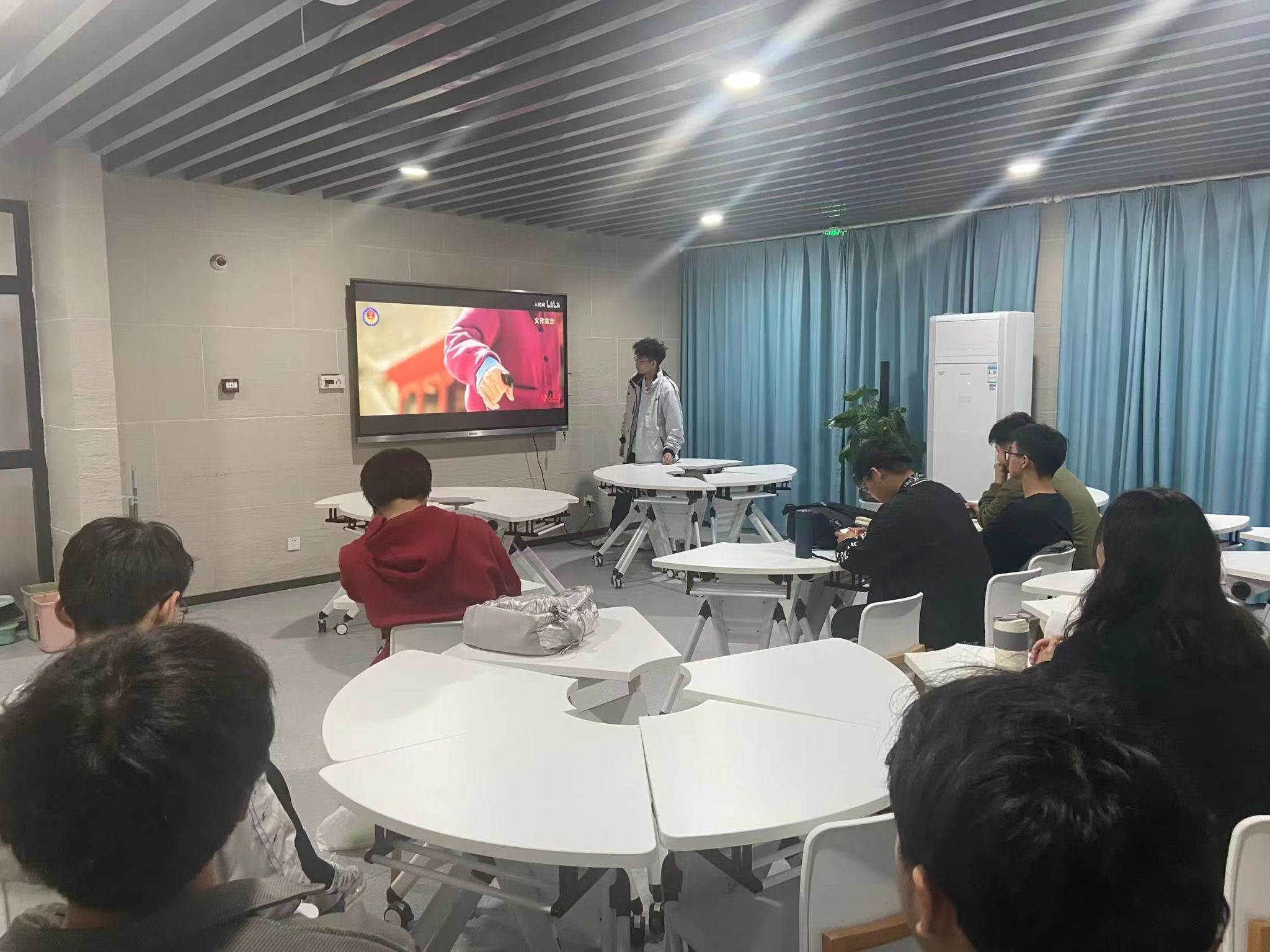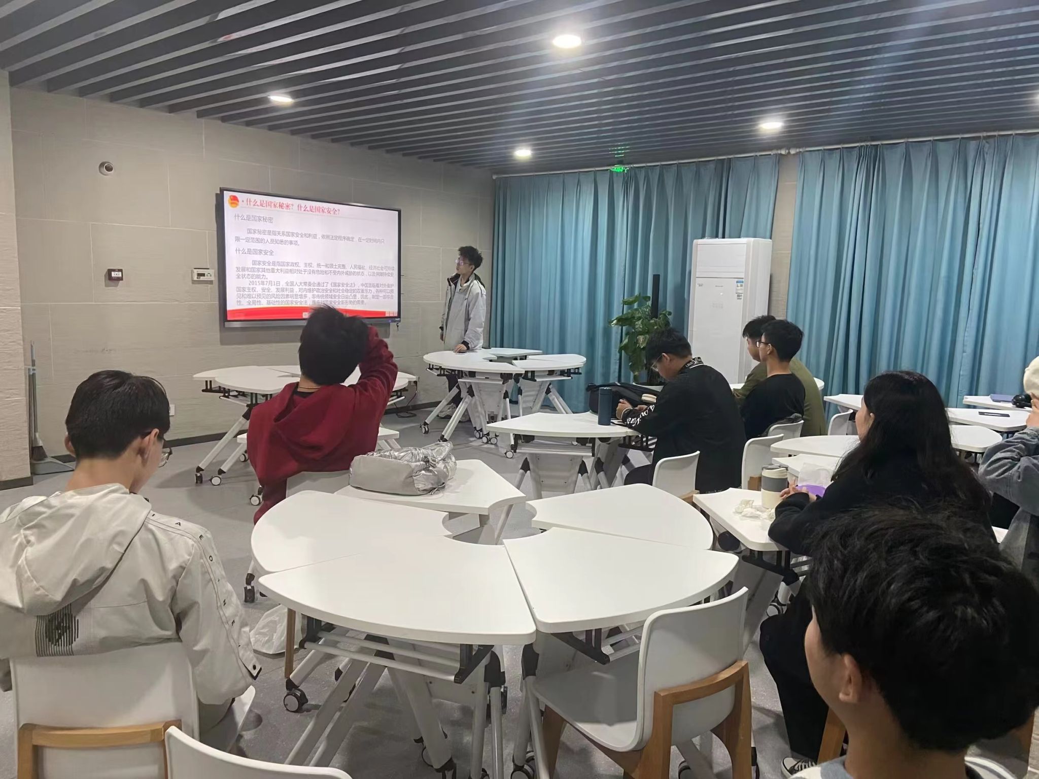 YK012202团支部带领团员青年们奏唱团歌,重温入团誓词。以“什么是国家秘密?、什么是国家安全?”两个问题入手,向团员青年们介绍了保密教育的基本概念和国家安全日的重要意义,团员们集体观看了国家安全教育影片。