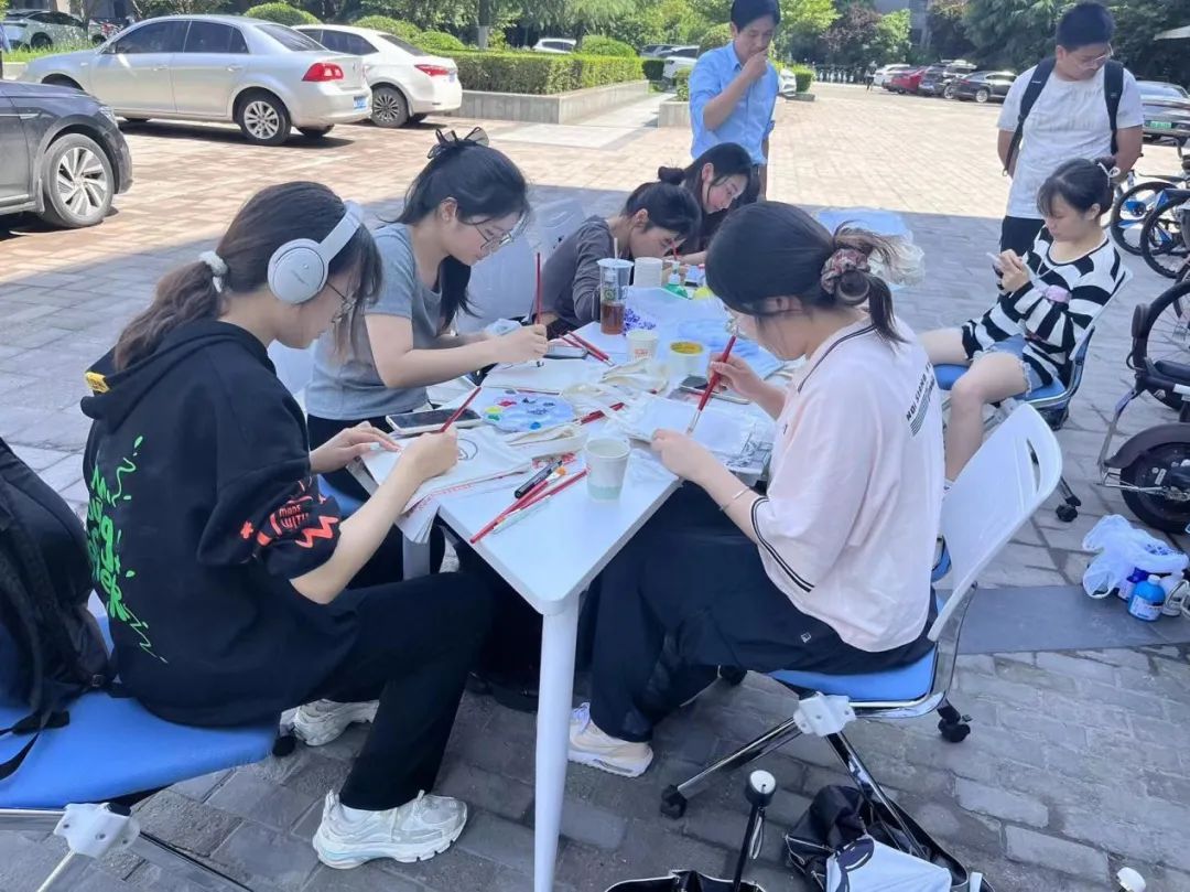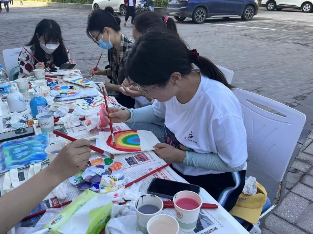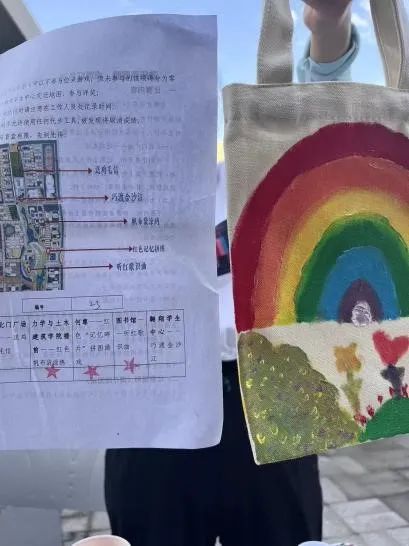 工作人员早早在这里布置好场地,他们将白色帆布袋、颜料、笔发放给到达该点位的同学们。活动现场,志愿者首先向参赛同学介绍彩绘帆布包的各种材料、制作流程和绘画技巧等内容。随后,大家便认真地绘画起来,沉浸在手工的乐趣中。同学们纷纷发挥创意,结合红色主题与公司特色,原本简单的白色帆布袋被点缀一新,同学们用自己的方式表达对党和祖国诚挚的热爱。