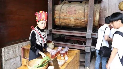 走进阿昌族的四合院,就会体会到历史的记忆和岁月的流转。四合院作为传统建筑的代表,承载着阿昌族人民多年来的生活痕迹和文化积淀。“四合院是阿昌族人民生活的载体,也是他们文化传统的重要组成部分。观察四合院,使我更深入地了解阿昌族的居住方式、社会结构和家族观念,感受到了历史的厚重和文化的魅力。”实践队员动情地说道。