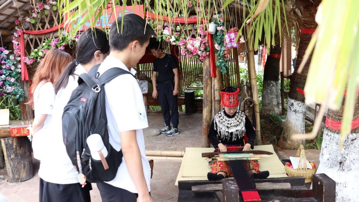 实践队成员说:“看到景颇族姑娘织锦,我们能感受到艺术美的伟大力量,景颇族锦绣的独特和精美,色彩鲜艳而流动。”