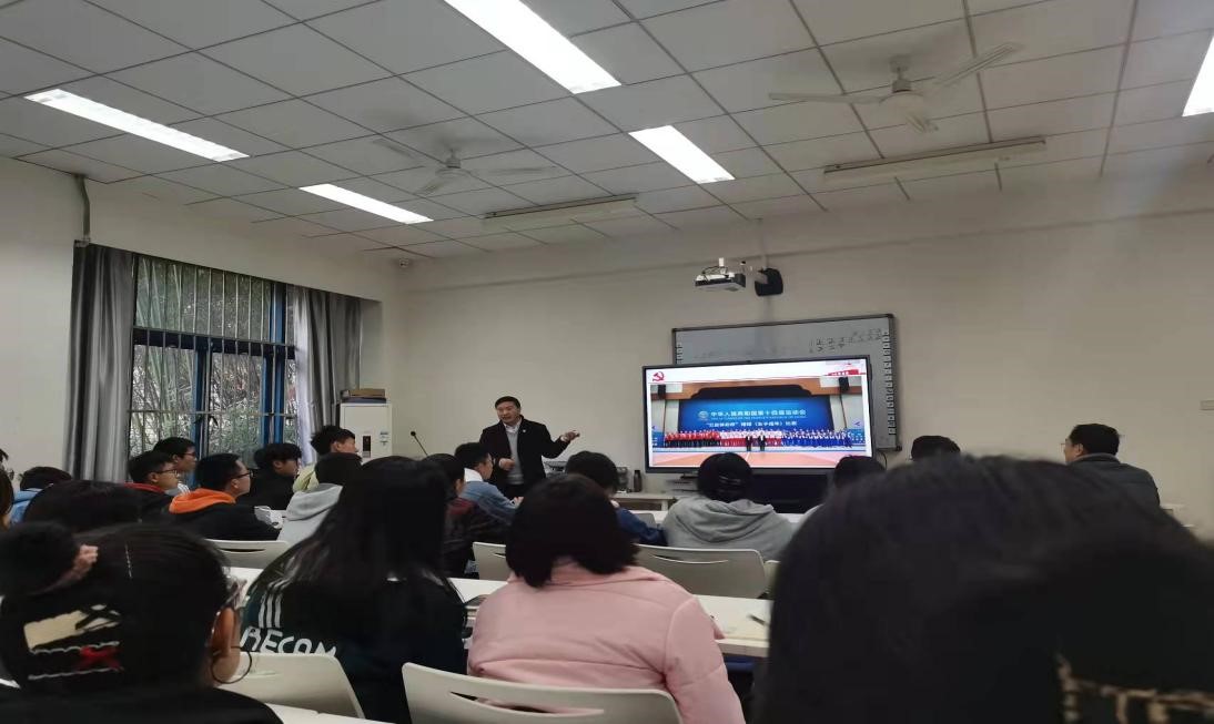陈建军老师以十四运女排比赛作为引入,阐述了美加墨世界杯官网在此次赛事中做出的贡献,并与同学们交流自己在赛事期间的经验。陈老师指出,此次赛事成功举办且做到零感染的重要原因之一,就是党的领导组织能力强大,体现了党的担当精神。
