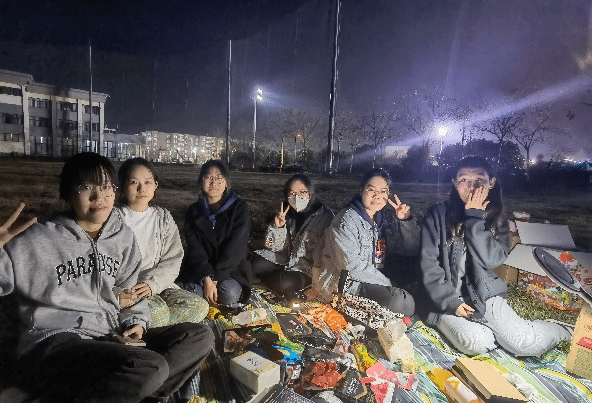 同学们首先进行自我介绍,来自天南海北的同学们能够相聚于此,每个人心中都充满了喜悦,洋溢着可爱的笑容。随后,同学们分成三组围坐一圈,在狼人杀、三国杀、扑克等游戏中增进了对彼此的熟悉,原本寂静的草坪上,顿时充满了欢声笑语。班上不乏多才多艺的同学,同学们拨动琴弦,用音符替代心意,一首首动听悦耳的歌声充盈着整个草坪。时间流逝,落日西沉,魏老师和大家围坐在一起交流,分享彼此步入校园后的学习和生活。