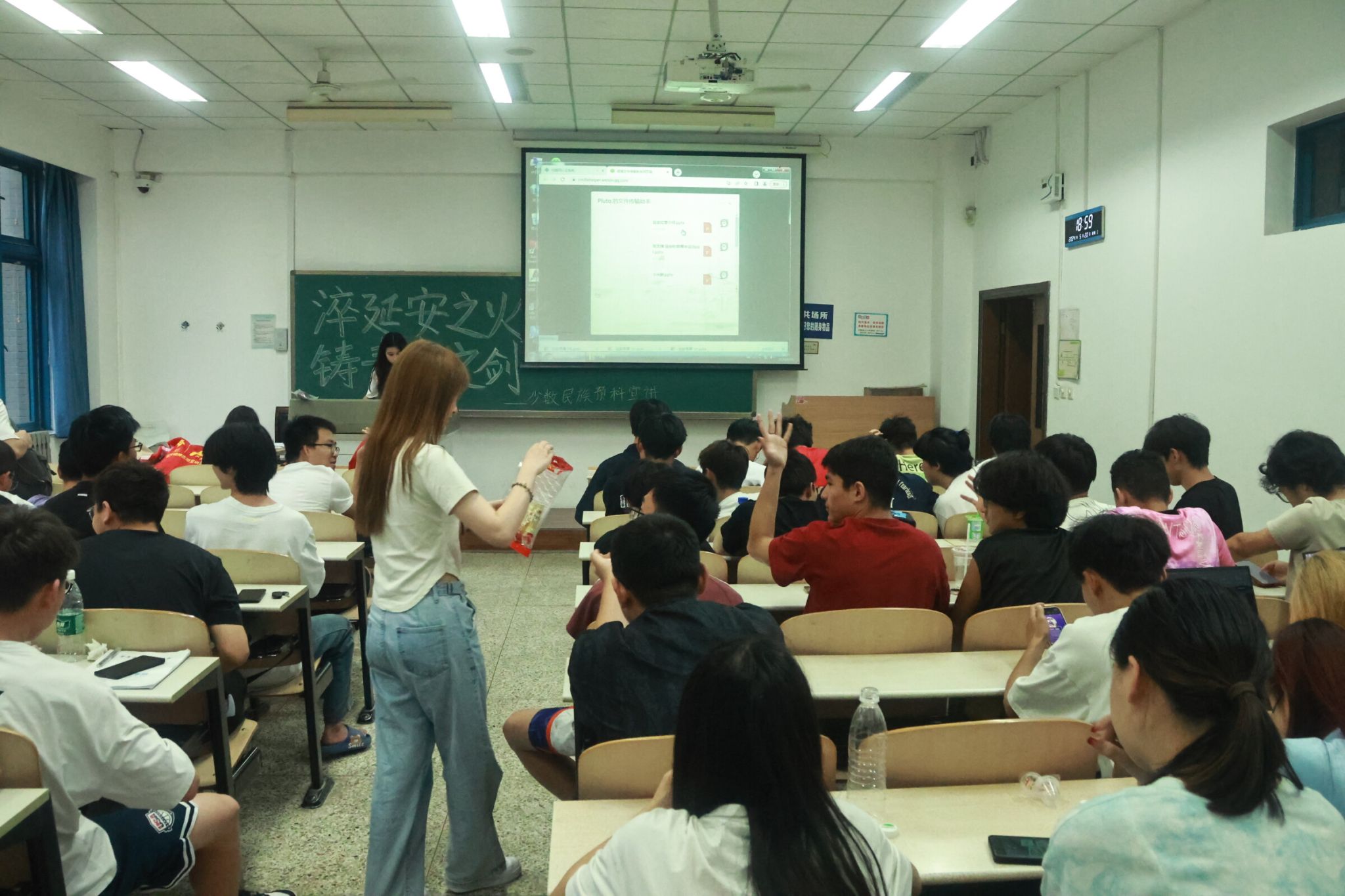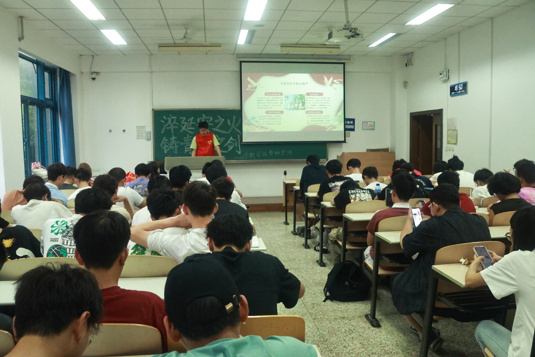 宣讲队成员们用生动的语言、丰富的图片和视频资料,向预科班的同学们介绍了延安精神的形成发展历史和政治内涵,讲解过程中将延安小故事和青年运动大事记巧妙穿插其中,给同学们带来了一场别开生面的第二课堂思政课,并就当代青年应如何继承宣扬延安精神提出实践性建议。