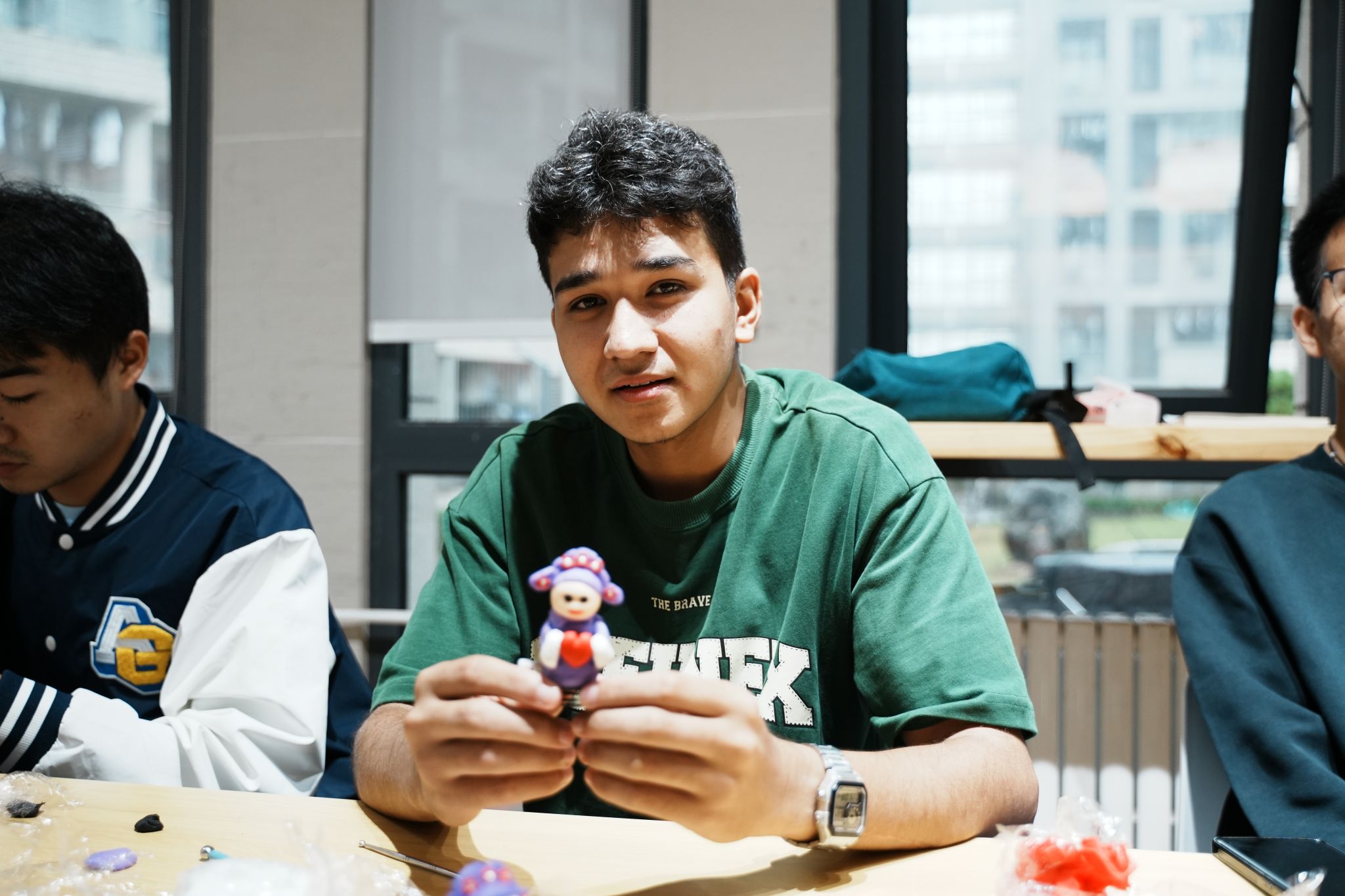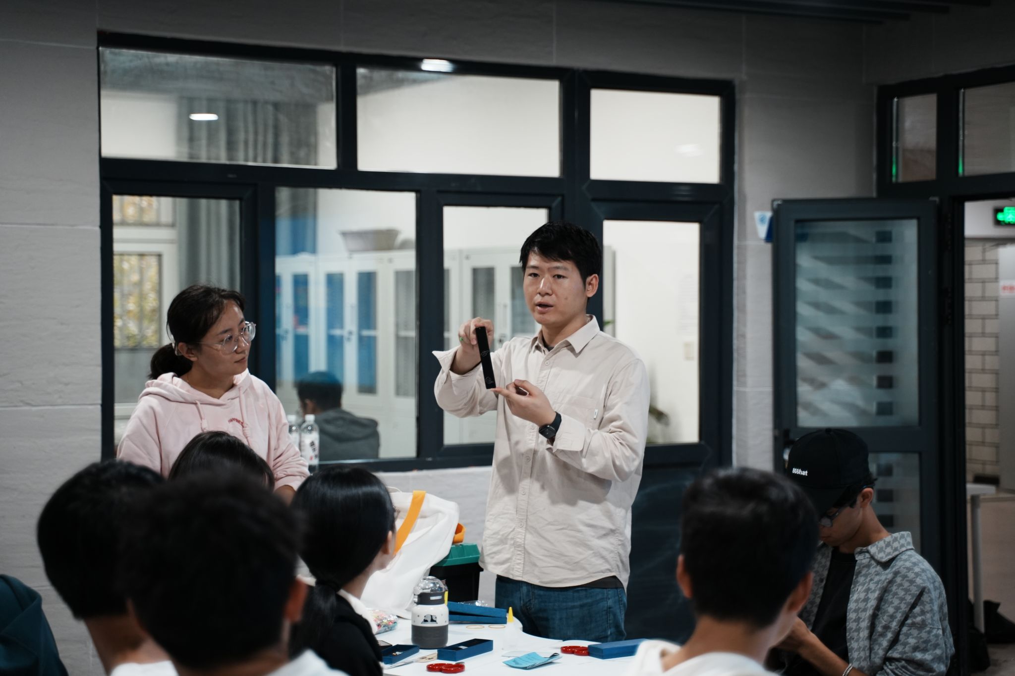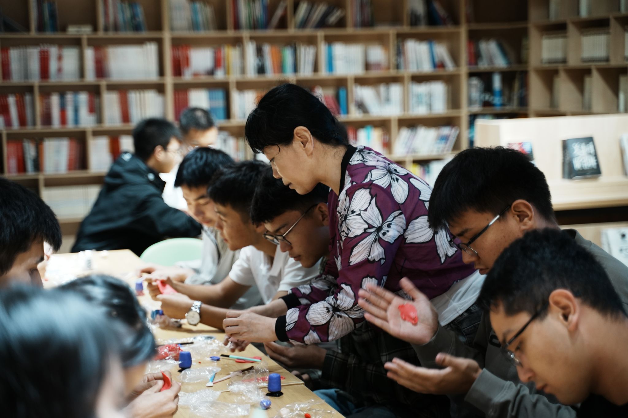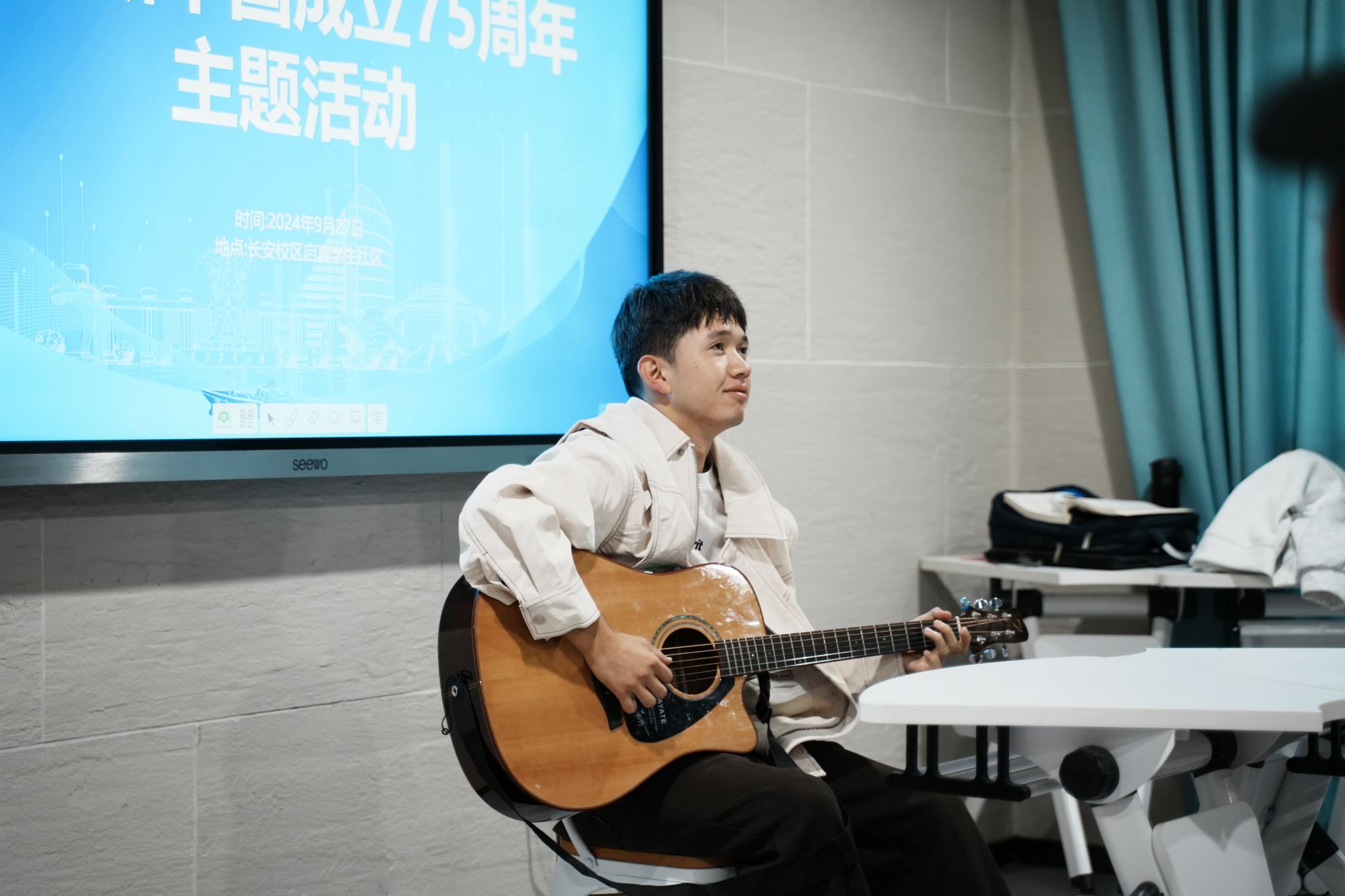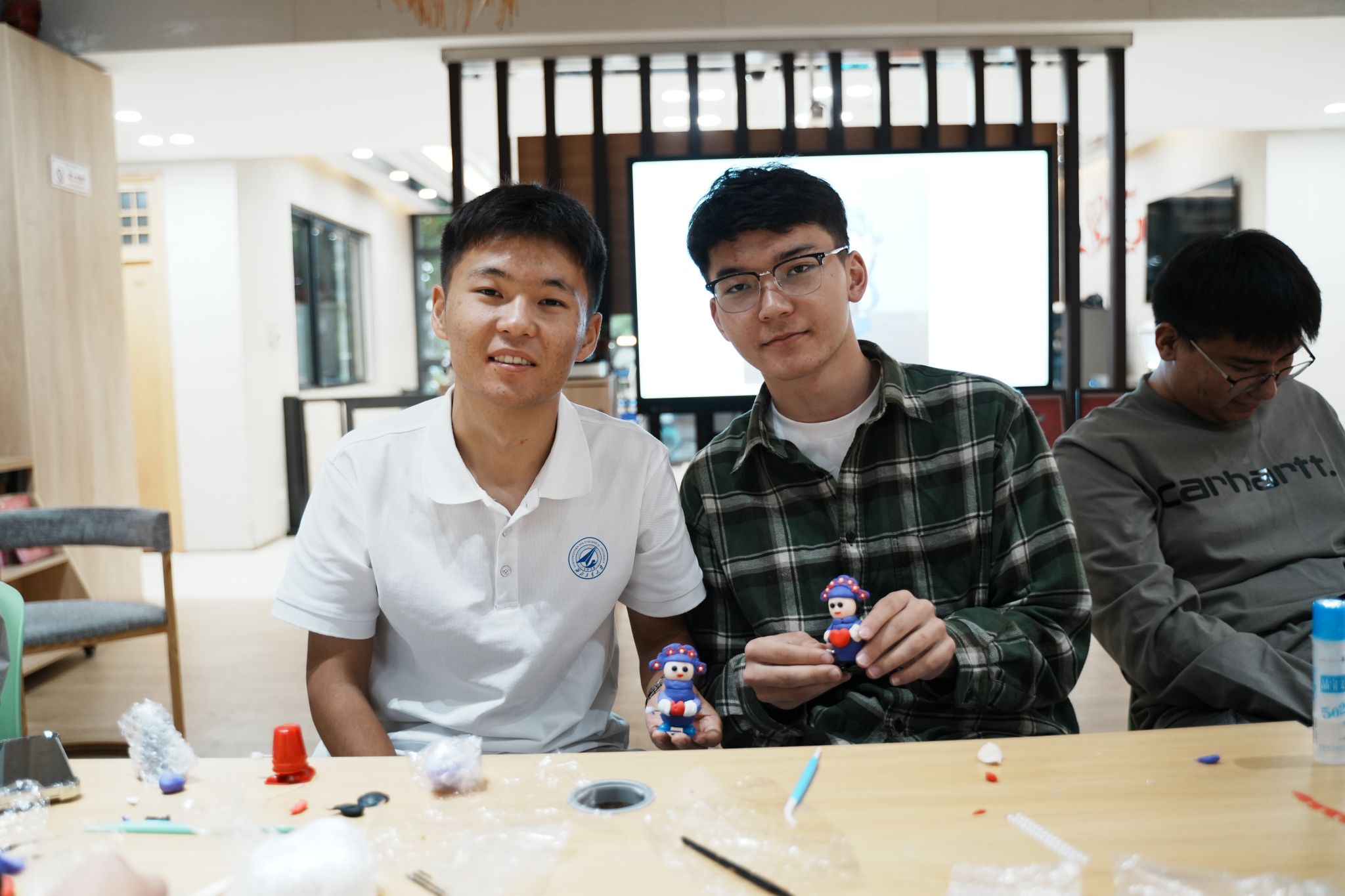 主题活动将理论宣讲与文化体验相结合,首先杨俊东同学带来了“强国复兴有我”主题宣讲,接下来阿比提·阿不来提同学用维吾尔语弹唱经典歌曲《杨树林》,随后同学们集体观看了纪录片《非遗正青春》,并在现场老师的指导下,充分体验了木镶银、滚灯、泥彩塑三项非遗文化项目,制作过程中,大家互相交流、互相帮助,气氛温馨而融洽,快乐的氛围溢满整个活动现场,彰显了传统文化与现代教育的深度融合。
