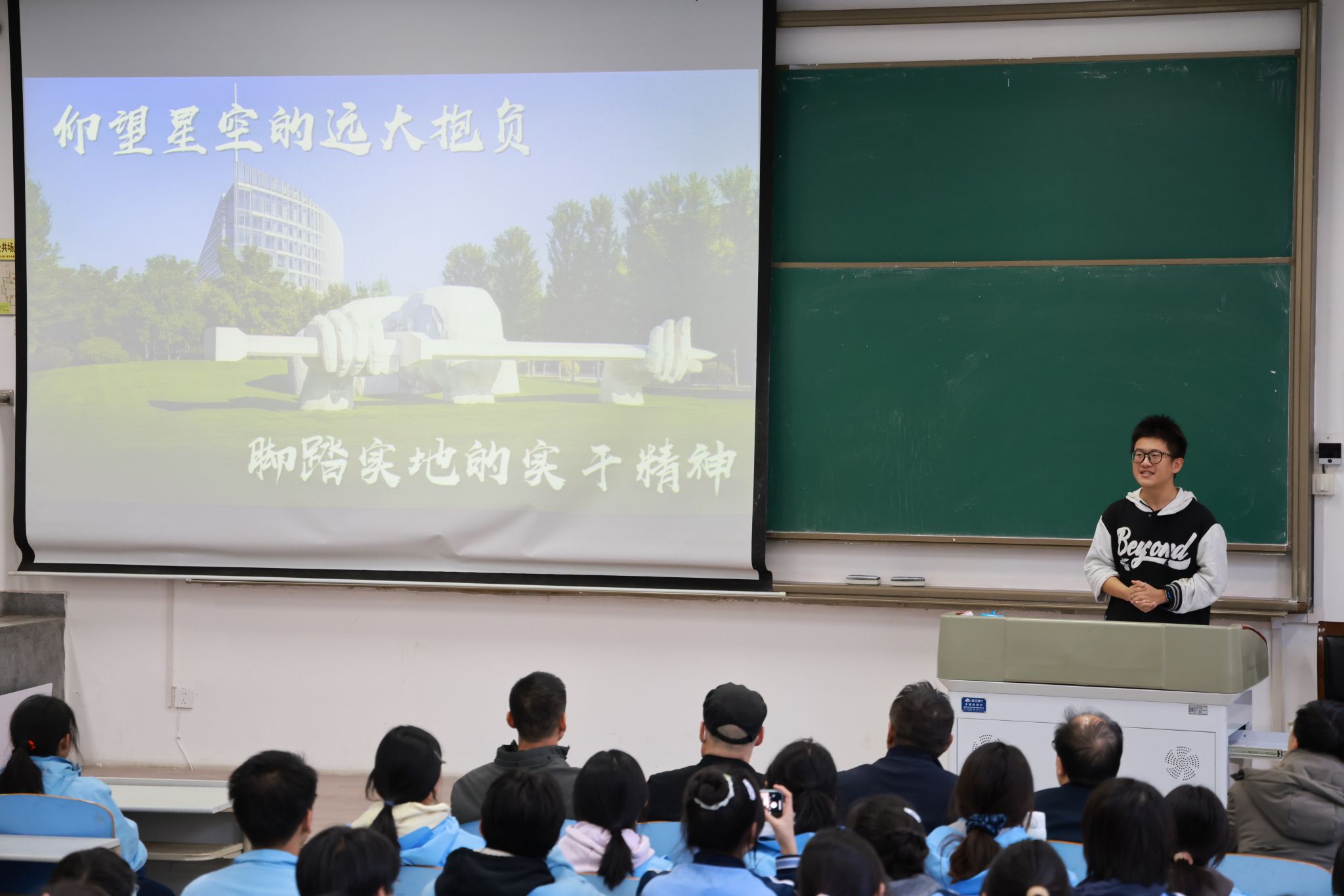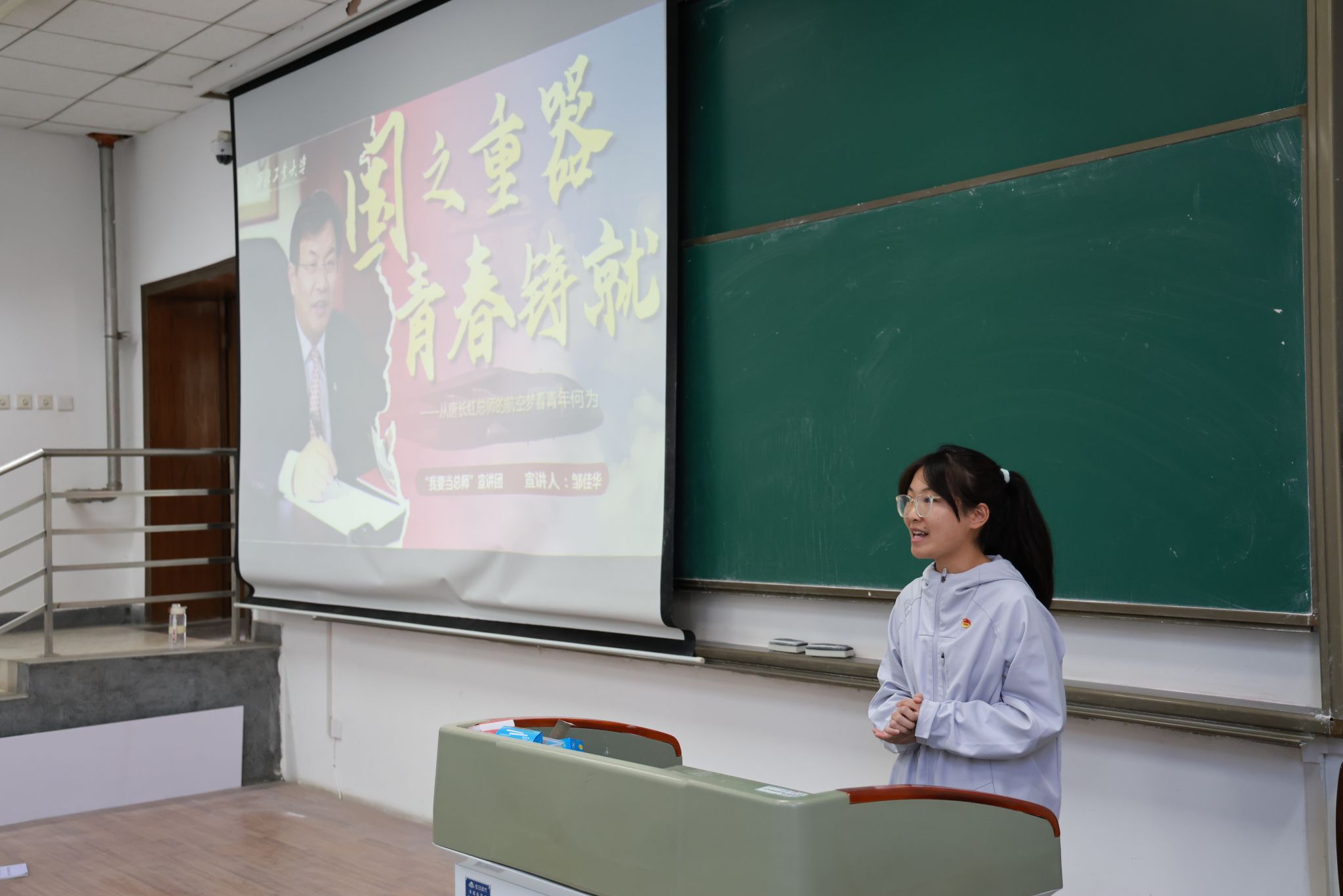 宣讲团成员谭牧桐、邹佳华以生动的语言、翔实的史料和真挚的情感,分别讲述了歼-20、运-20总师的奋斗历程与报国情怀,为远东一中学子献上了一场兼具思想性与感染力的精神盛宴。