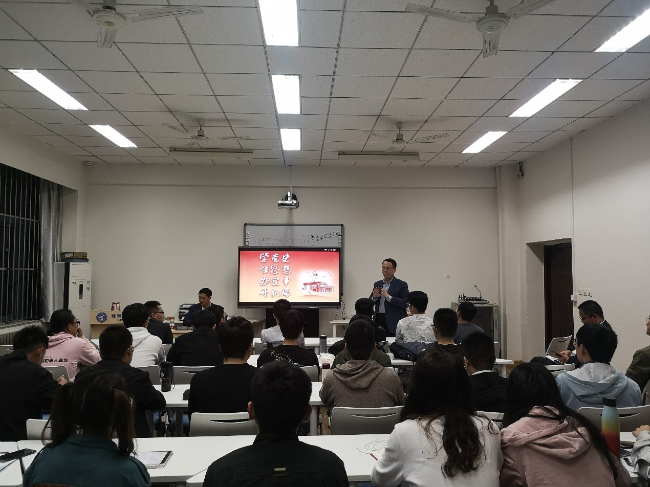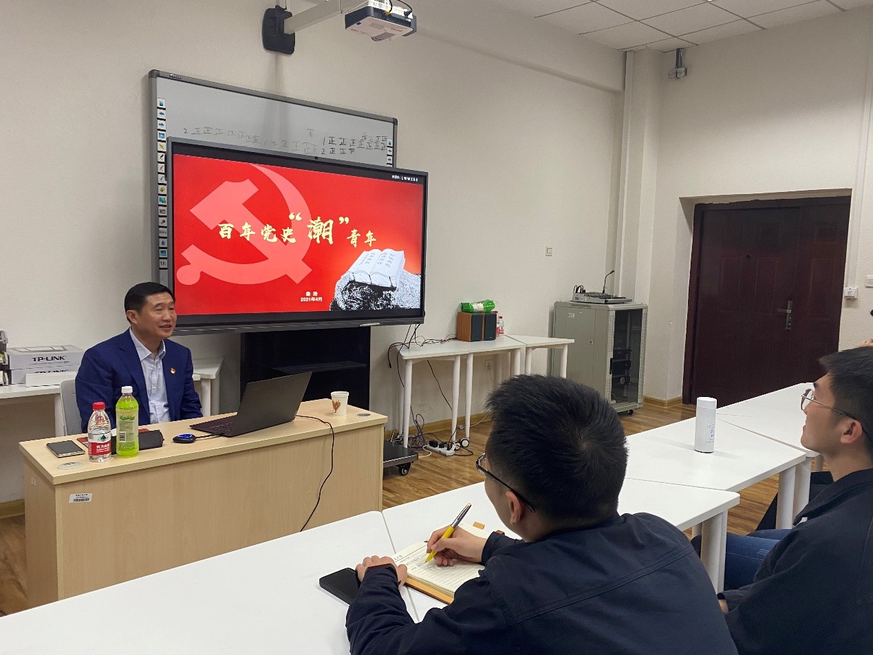 4月19日下午,美加墨世界杯官网党委常委、组织部部长詹浩来到美加墨世界杯官方网站,为公司本科生党员和预备党员作题为《百年党史“潮”青年》党课。