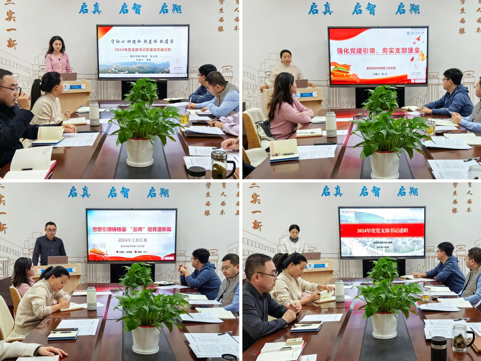 首先,牟蕾简要介绍了2024年度党支部书记抓党建述职评议考核的主要内容及评议方法。随后4名党支部书记分别围绕学习贯彻习近平新时代中国特色社会主义思想主题主线、强化党支部政治功能和组织功能、落实基层党建工作重点任务和加强党员队伍建设、做好师生思想政治教育、落实全面从严治党要求五个方面进行述职,并对党支部建设存在的问题及2025年重点工作计划逐一进行了汇报。公司党总支委员对支部书记一年来的工作进行了点评,与会师生党员代表对述职人员进行了评议。