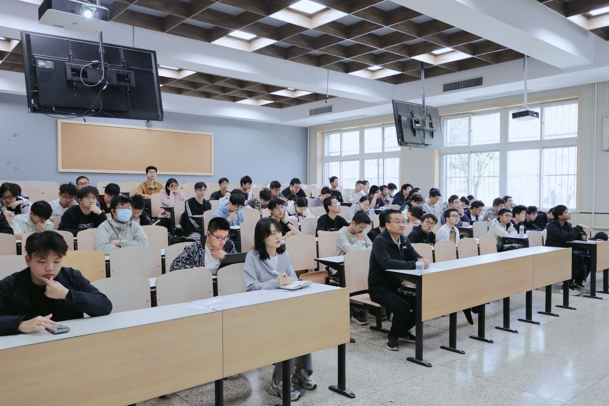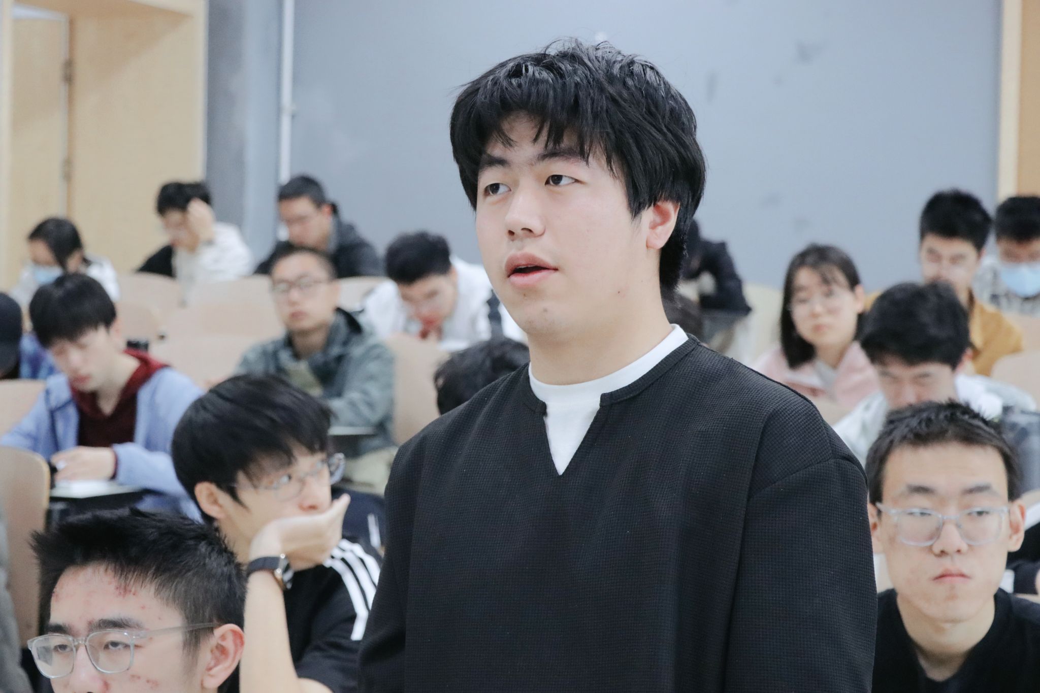 交流研讨环节,杨坤德教授就同学们提出的“水下目标检测的难点”“声纳对海洋生态的影响”等问题进行了详细解答,并鼓励同学们将个人的理想追求融入海洋强国的建设中,永攀科技高峰。