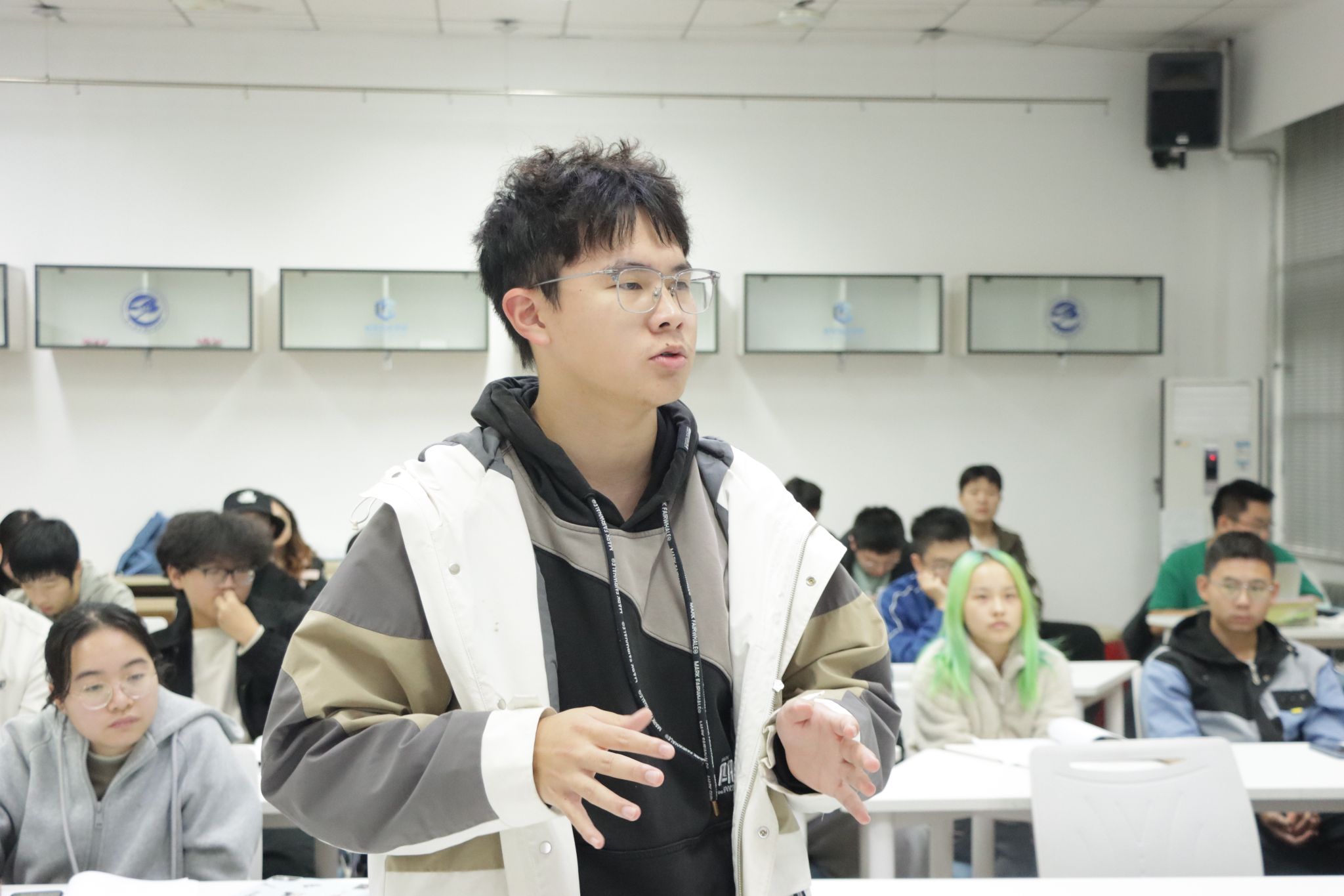 自由交流环节,戴玉超教授围绕同学们提出的人工智能在电子信息领域的应用、三维视觉获取信息的途径、新技术的不断涌现对现有研究方法的冲击等问题进行了详细解答。他谈到,随着科学技术的发展,学科交叉的重要性越来越突出,需要同学们在学习知识的过程中更加注重“宽口径、厚基础”,并鼓励大家投身“顶天立地”的科学研究,服务国家重大战略需求!