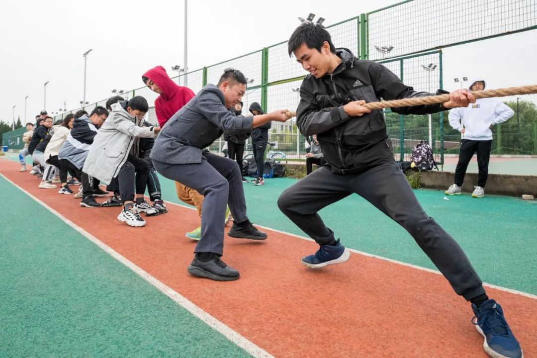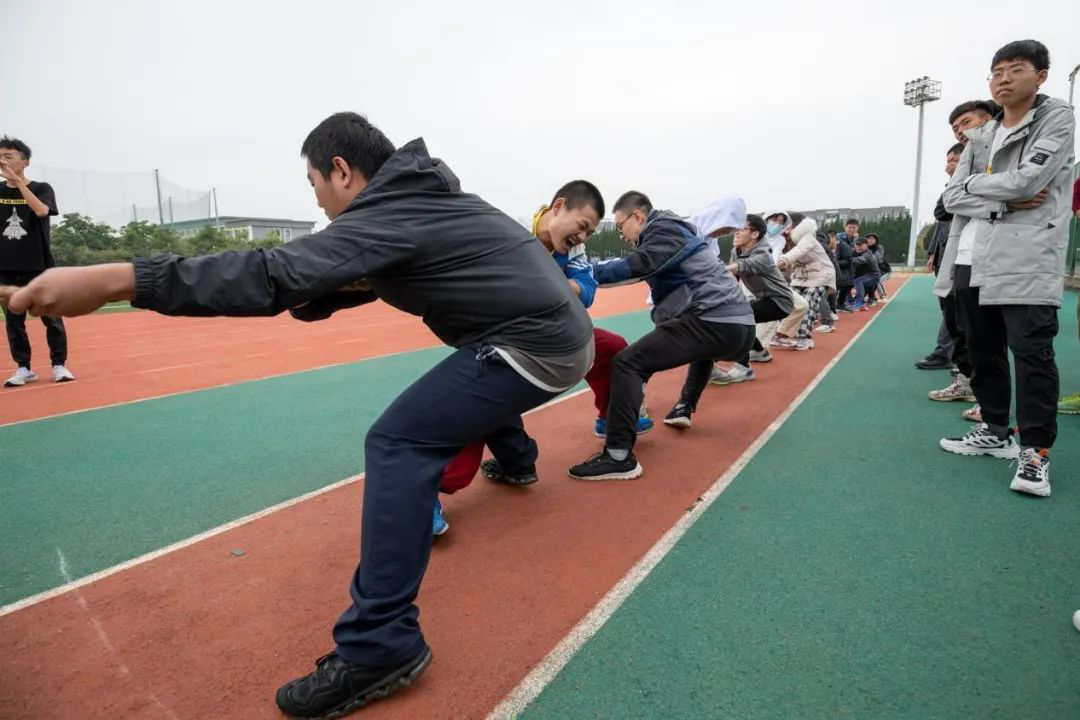 随后进行了拔河比赛,各方同学在赛前互相分享经验,调整姿势;在比赛过程中默契地喊起洪亮的口号,团结一致,观看的同学也在积极地加油打气,比赛气氛热烈。