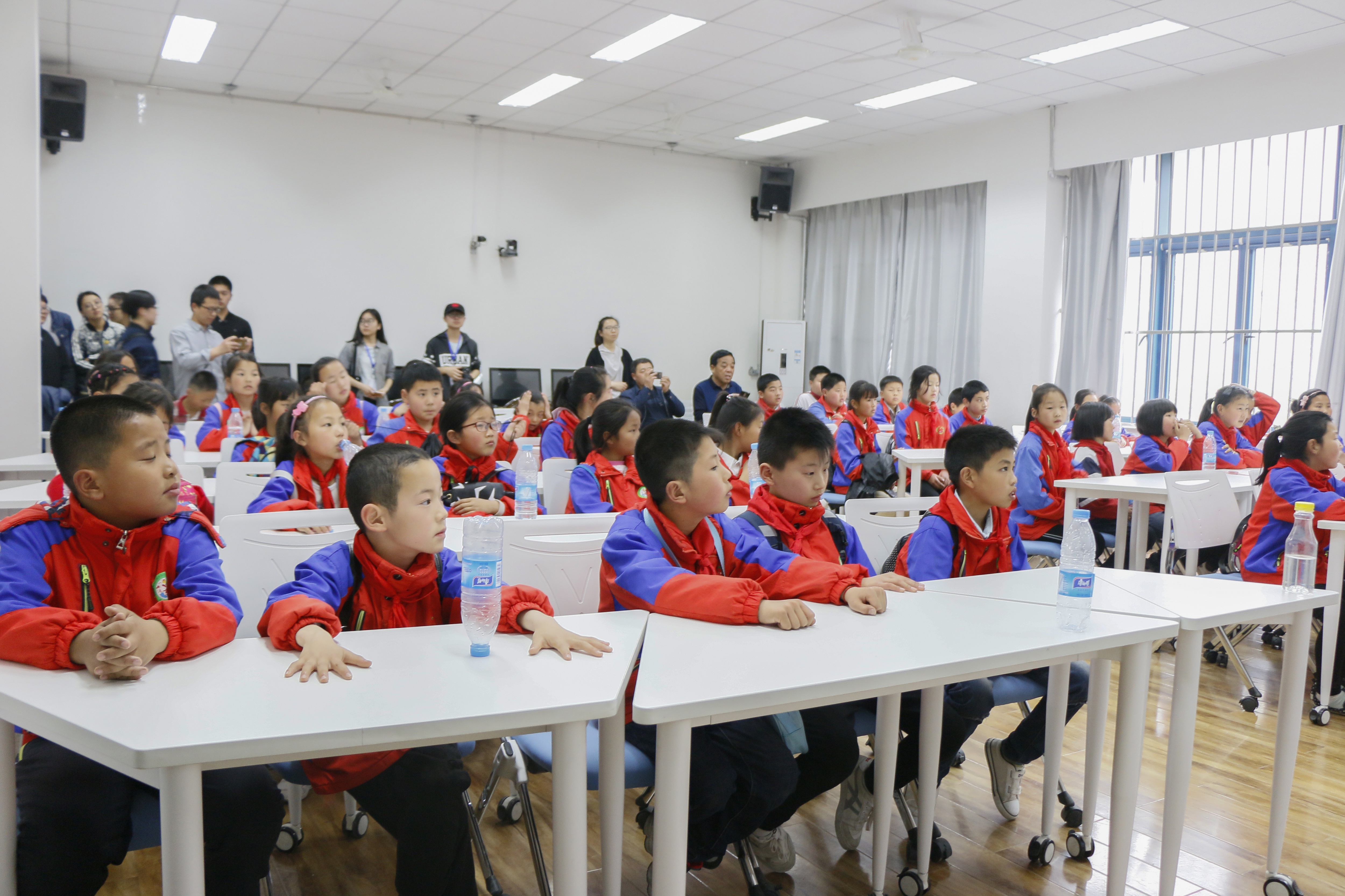初见工大,得天独厚的校园环境、雄伟壮观的图书馆、别具匠心的教学楼,都使孩子们惊叹不已。在志愿者的带领和讲解下,大家参观了“何尊组雕”,强烈的好奇心使孩子们听得格外认真,仿佛也体会到了工大学子报效祖国、献身国防的赤子之心。孩子们的到来为美丽的校园更平添了一份勃勃生机,后续活动中,在志愿者的精心讲解下,孩子们对老员工活充满向往,同时对航空航天表现出极大的兴趣和热情。