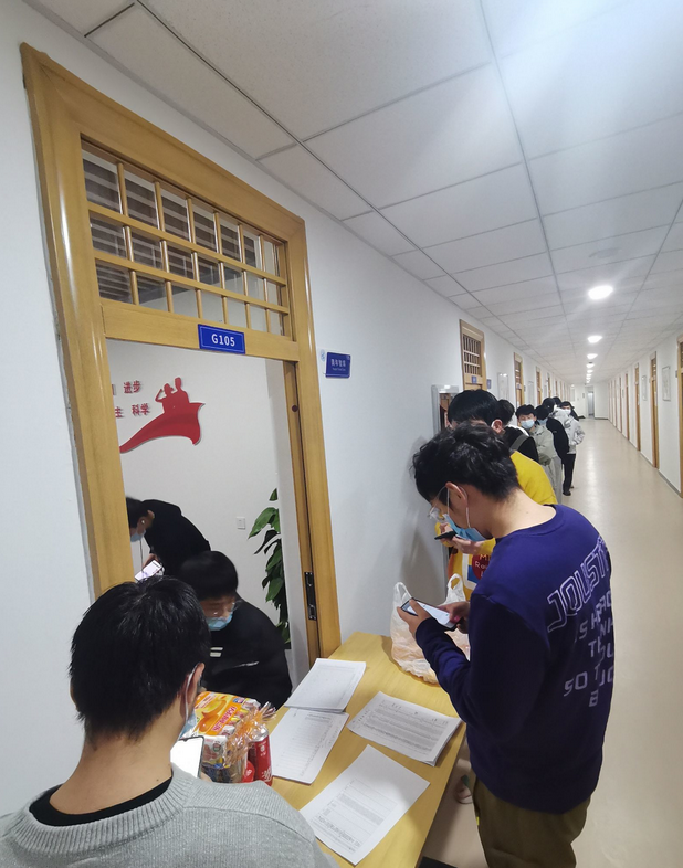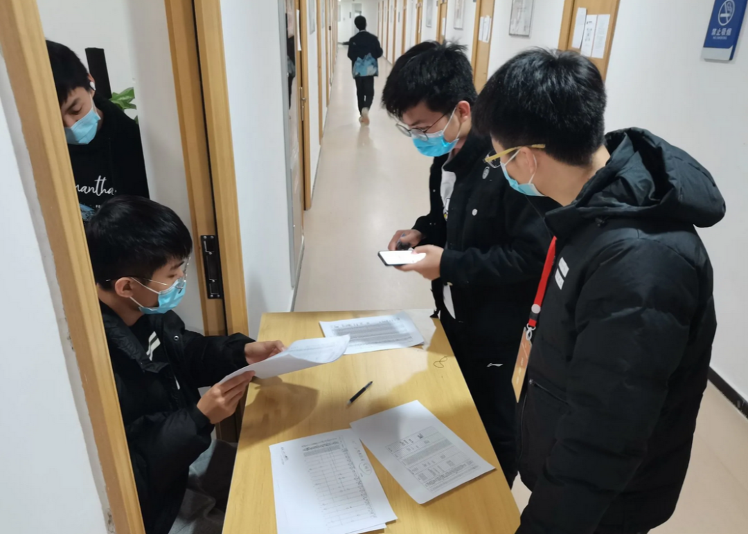 为了保护同学们的安全和维持宿舍秩序,支部党员志愿者们以高标准、严要求规范自己,主动报名参与值班活动,坚守在冷清的楼道中。
