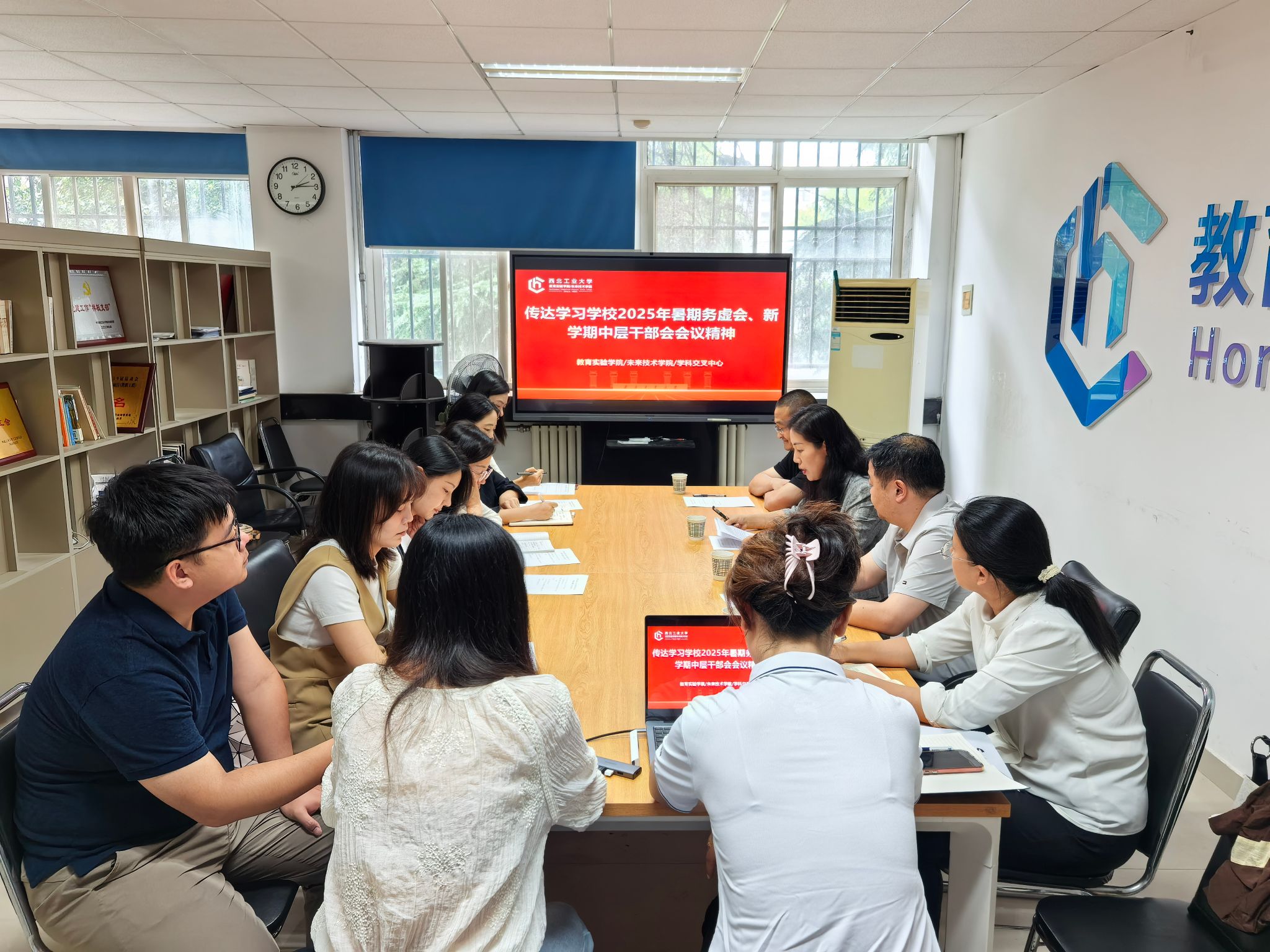 会上经理林鑫带领与会人员集体学习了宋保维董事长《优化学科专业布局推动“总师型”人才培养》、李言荣书记《关于公司“十五五”规划中的几个问题》两个报告的主要内容,重点学习了“总师型”人才培养范式变革举措、交叉学科专业人才培养新模式等,并围绕“十四五”规划收官、“十五五”规划布局对公司工作进行安排部署。党总支书记牟蕾传达了李言荣书记、宋保维董事长在公司暑期务虚会、新学期中层干部会上的讲话精神,并围绕“127”目标2.0版本“一十百千”、“总师育人文化”引领拔尖人才培养、“西工大一流,公司何为”等,对公司新学期工作提出要求。