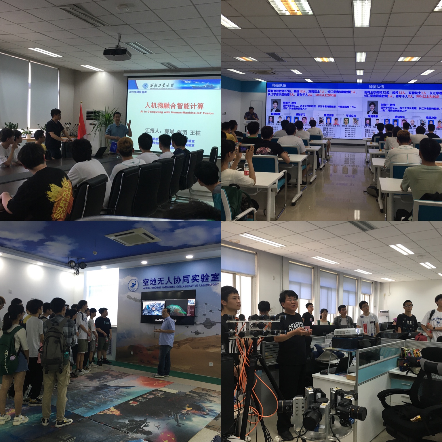 同学们先后参观了陕西省嵌入式系统技术重点实验室、智能感知与计算工信部重点实验室、数据挖掘与生物信息实验室、大数据存储与管理工信部重点实验室、空天地海一体化大数据应用技术国家工程实验室、陕西省语音与图像信息处理重点实验室、计算机视觉及计算摄像学研究组等。相关老师对各团队的研究方向、研究成果、研究进展进行了详细地介绍。同学们对目前智能物联网的发展趋势及产业状况、人机物融合智能计算、大数据的存储采集与管理、无人系统智能视觉感知、音频语音与语言处理研究等专业知识有了进一步了解。现场,老师与同学们进行了深入交流,并针对大家关心的就业去向、专业研究能力要求等问题,进行了解答。