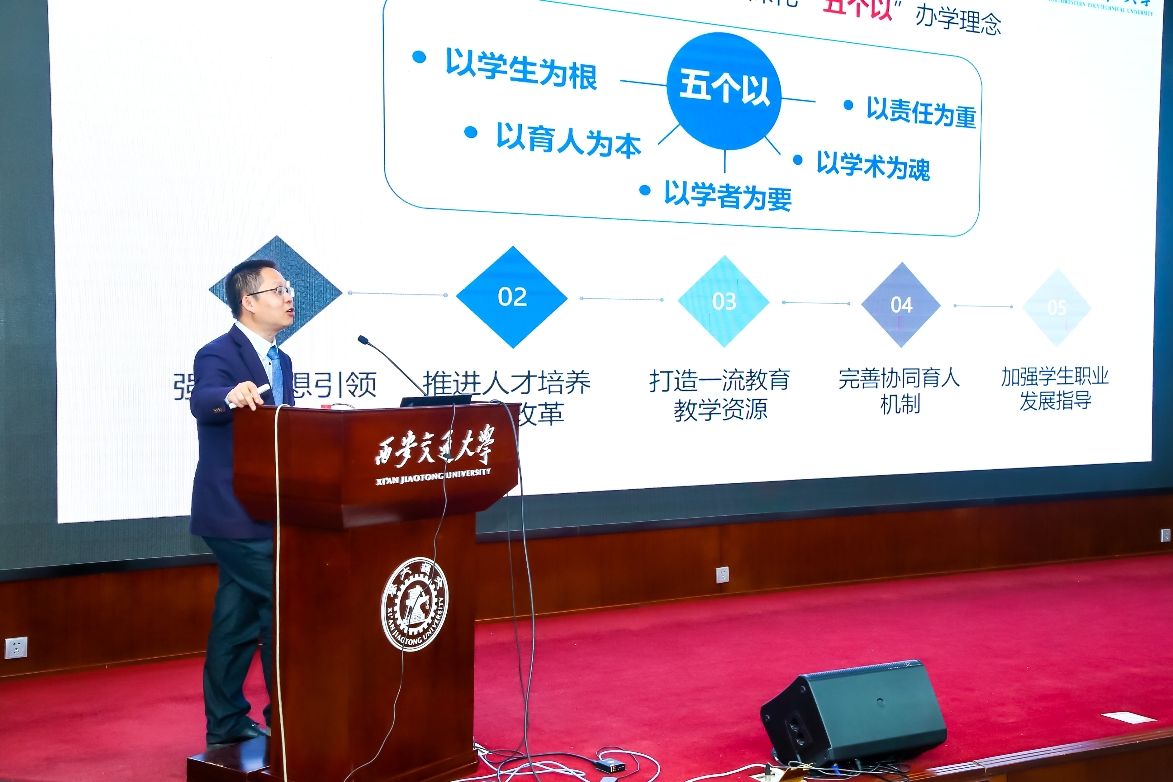 陕西省教育厅二级巡视员高巍表示,陕西作为我国重要的高等教育基地之一,积极对接国家“双一流”战略,充分结合省情,创造性实施“四个一流”,即一流大学、一流学科、一流公司和一流专业建设。在全面推进高等教育综合改革、国家级教学成果奖、创新创业教育改革、高等职业教育创新发展等多方面取得了显著成绩,为中国高等教育贡献了陕西方案。西安交通大学郑南宁院士以《人工智能与教育》为题,围绕人工智能技术的发展与未来形态、人工智能的教育与课程体系构建两个方面作了主题报告,他强调教育是一个优雅而缓慢的过程,不能急于求成,要潜心教育与课程建设,提升人才培养质量。
