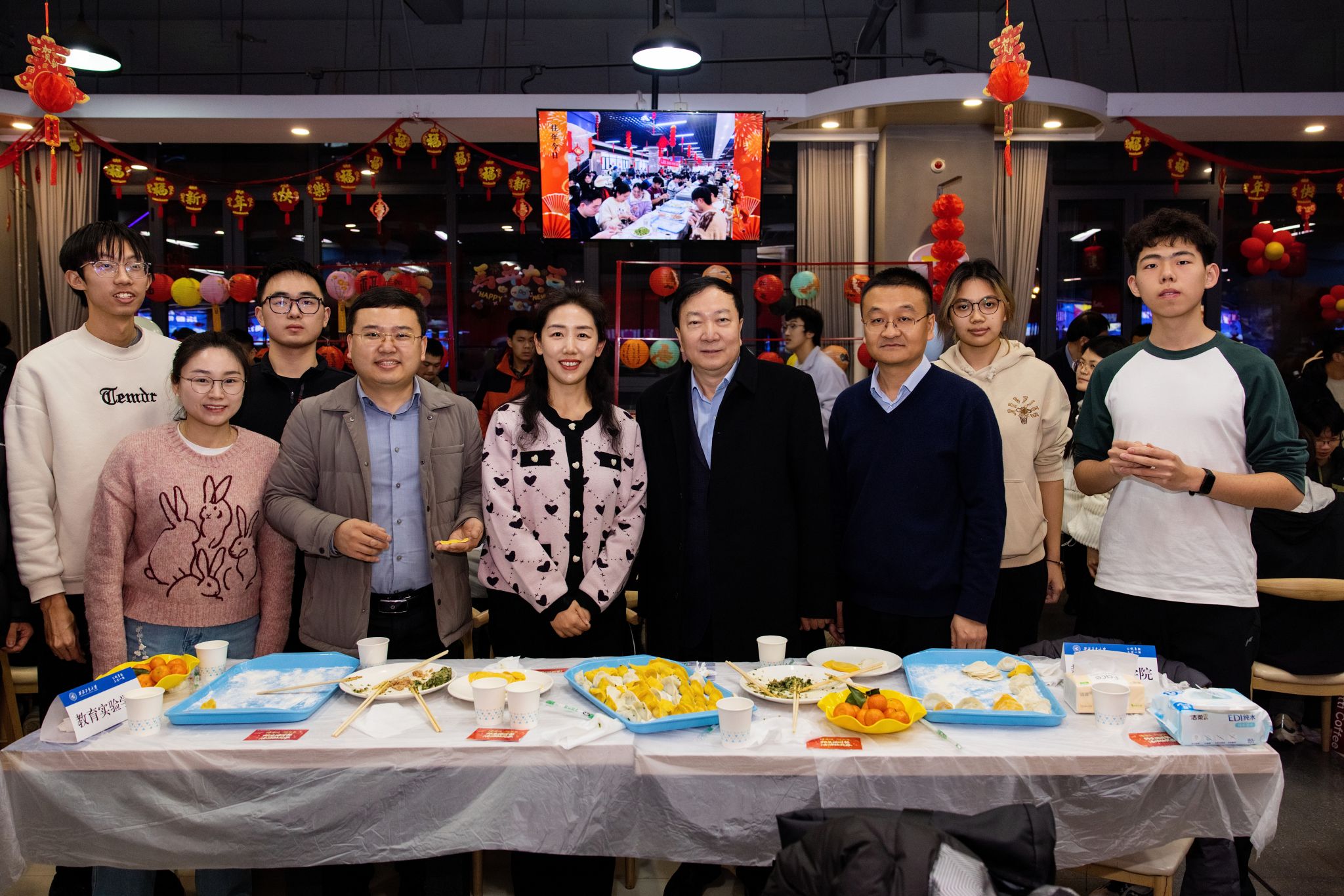 岁末将至,年味渐浓。12月31日晚,公司海天苑餐厅内一场温馨热闹的包饺子联欢活动拉开辞旧迎新的序幕。公司党委书记李言荣,董事长助理王宇波分别来到美加墨世界杯官方网站/学科交叉中心的活动现场,与公司师生一同包饺子,话新年,亲切交流。公司党委牟蕾书记,副经理蔡力,副书记、副经理范翔以及辅导员老师们与同学们围坐一堂,笑语不断,在亲手制作中感受传统节俗的温暖,为校园增添了浓浓的团圆氛围。