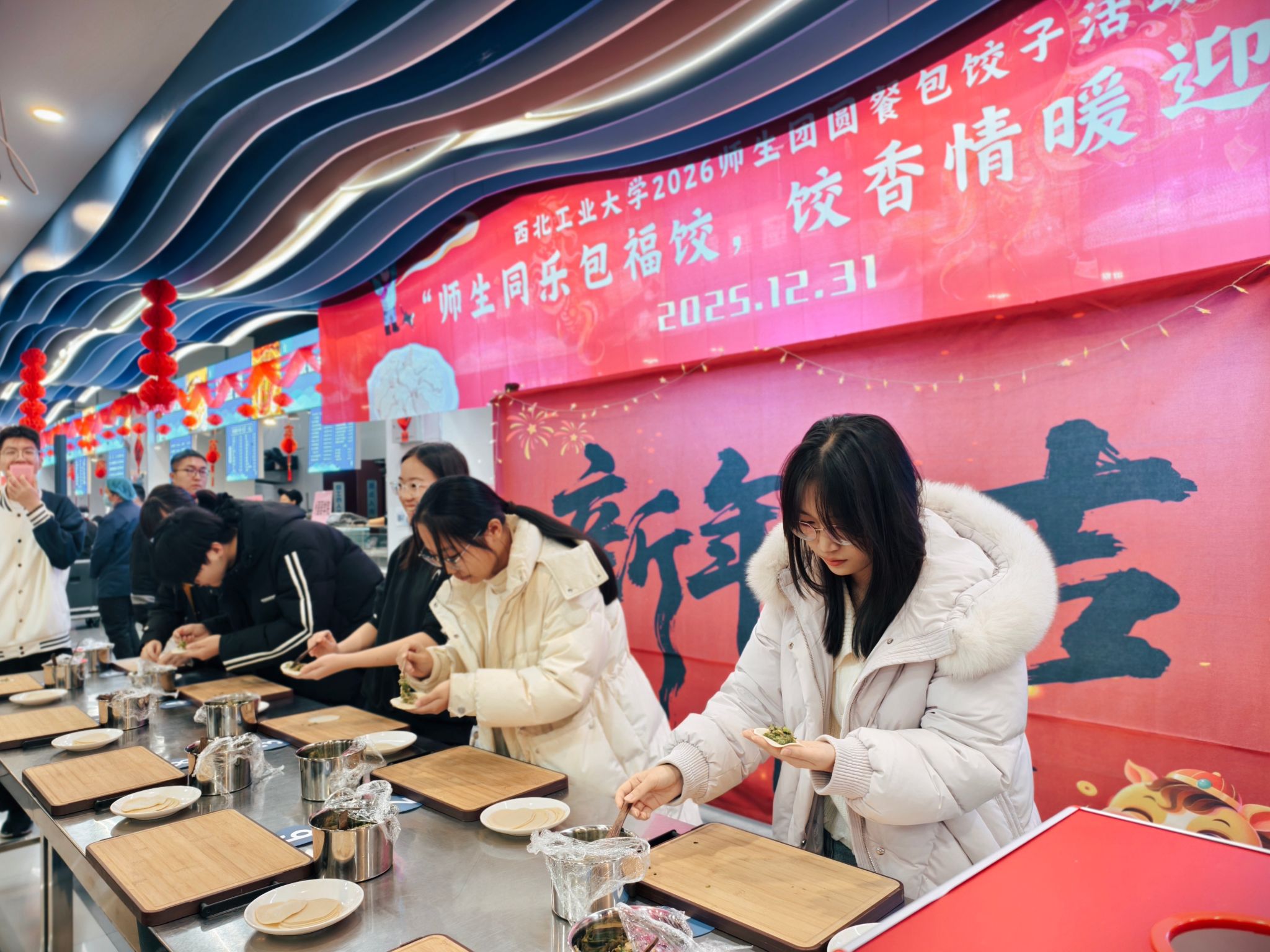 这场温馨的饺子盛宴与活力的创意嘉年华,共同为旧岁收尾、为新年启程。愿这份团圆之暖、创意之趣与奋进之力,伴随同学们在2026年的新征程上,步履不停、向阳而行!。
