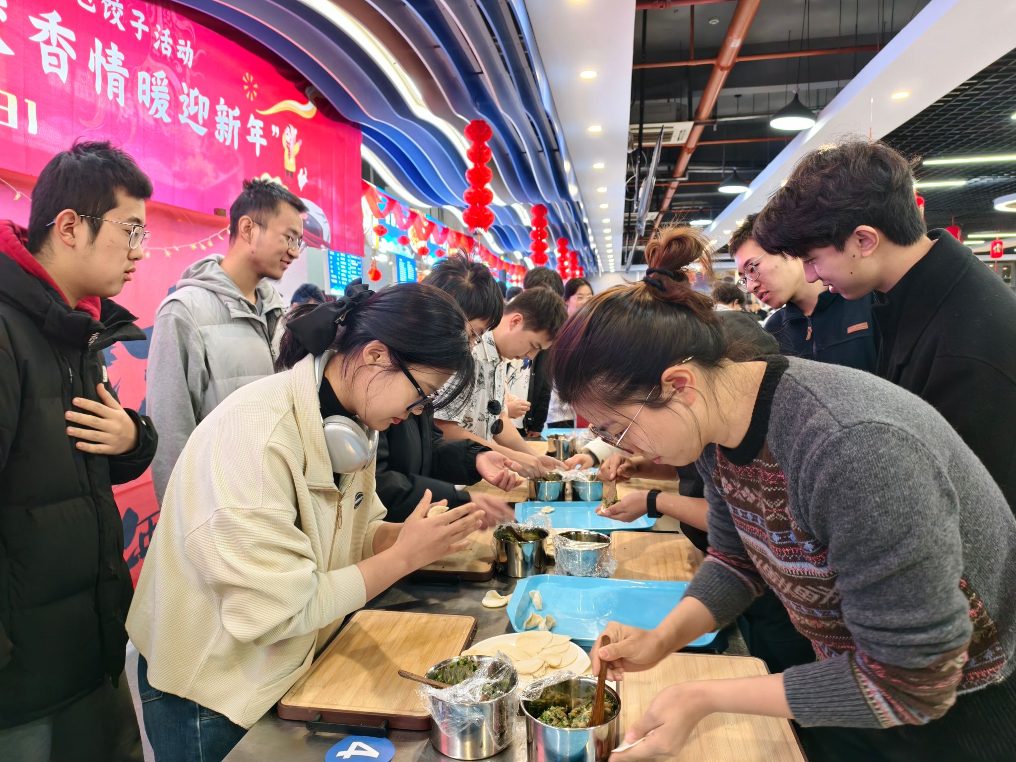 公司承办了师生团圆饭中的饺艺大赛环节,在场师生热情参与。“26g饺子称重赛”中,大家精准拿捏馅料与面皮的配比,以每个饺子26克的巧思,寄托对2026年的美好期许;“速度挑战赛”上,来自10个公司的代表队凝心聚力、默契配合,争分夺秒展现包饺子绝技,现场喝彩声此起彼伏。评委们从颜值、数量、重量等维度细致品评,志愿者们穿梭其间贴心服务,让这场饺艺比拼充满竞技乐趣,饱含互助温情。