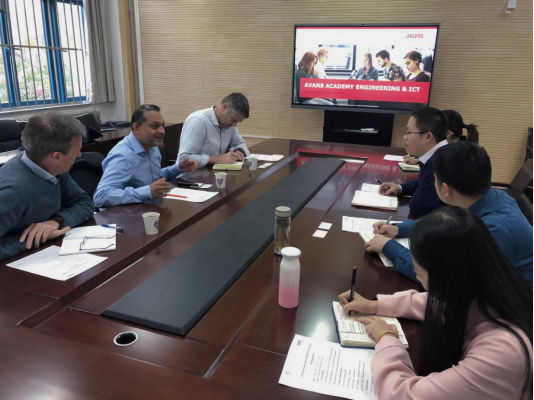 12月5日,荷兰艾文斯应用科技大学(Avans University of Applied Sciences)《项目管理》课程团队:信息通信工程公司经理Ricardo Abdoel及2名授课教师Marice Bastiaensen、Lennart Nuhn来访美加墨世界杯官方网站。美加墨世界杯官方网站经理王掩刚、副经理姚如贵、办公室副主任于鸣鹭、办公室秘书李晓珊及国际化秘书杨文琪陪同会见。