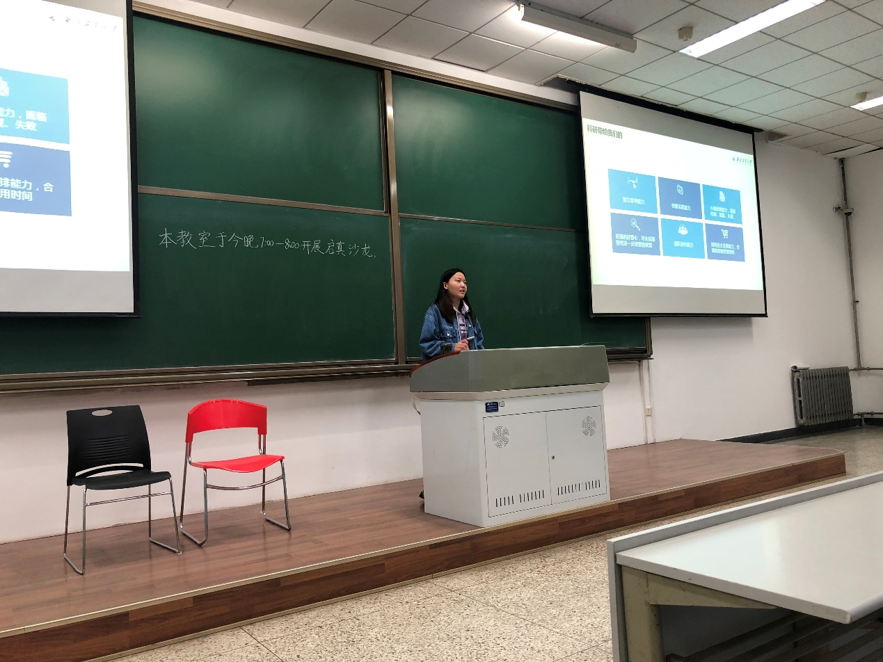 活动开始,袁瑞同学介绍了自己专业、保研去向。结合自身经历,袁瑞介绍了自己大学三年的学习经验和保研之路。她表示,首先要重视基础学科的学习,尤其是数学和英语,这两门学科是保研时许多顶尖高校都非常注重的,很多优秀的同学因为英语成绩不理想,而在申请夏令营和保研的过程中吃亏。接着,她讲述了专业课学习的技巧和建议,一定要紧跟老师,吸收老师当堂讲授的知识和经验方法,当然课后练习和考前复习也必不可少,她提到,系统的笔记对于日后快速回顾整个课程知识体系非常便捷。对于如何提高学习效率,她介绍了拒绝拖延症的方法:抛弃手机,设定番茄钟,排除外界干扰,对自己“狠”一点;制定每一天的详细计划。