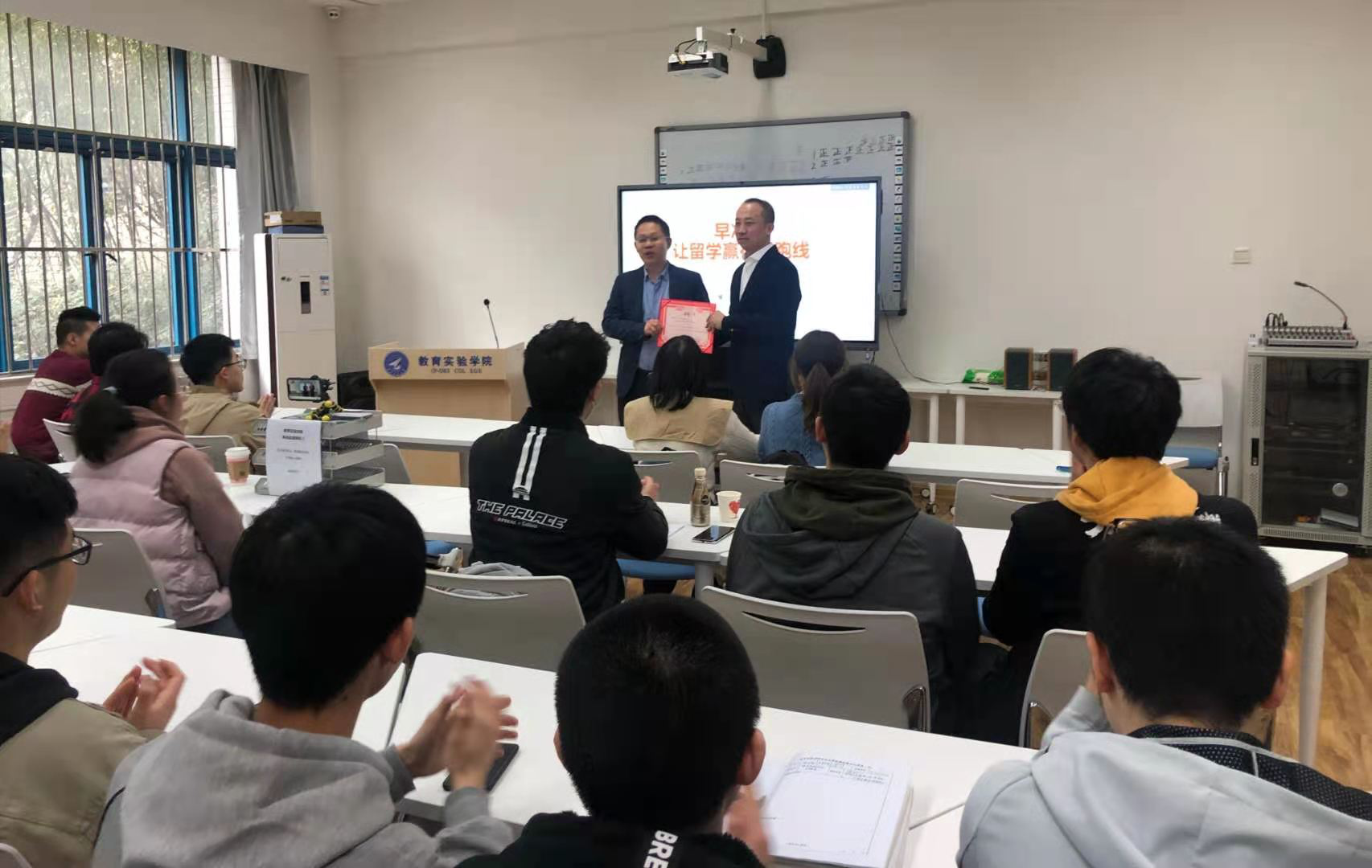 之后,侯老师系统介绍了出国留学深造应具备的能力和申请流程及条件等,建议大家早立目标,早准备,除了取得优异的学业成绩之外,要在科研和语言交流能力上下功夫。最后,侯老师针对不同专业,具体分析了世界名校的录取要求和标准,满满的“干货”使同学们受益匪浅。
