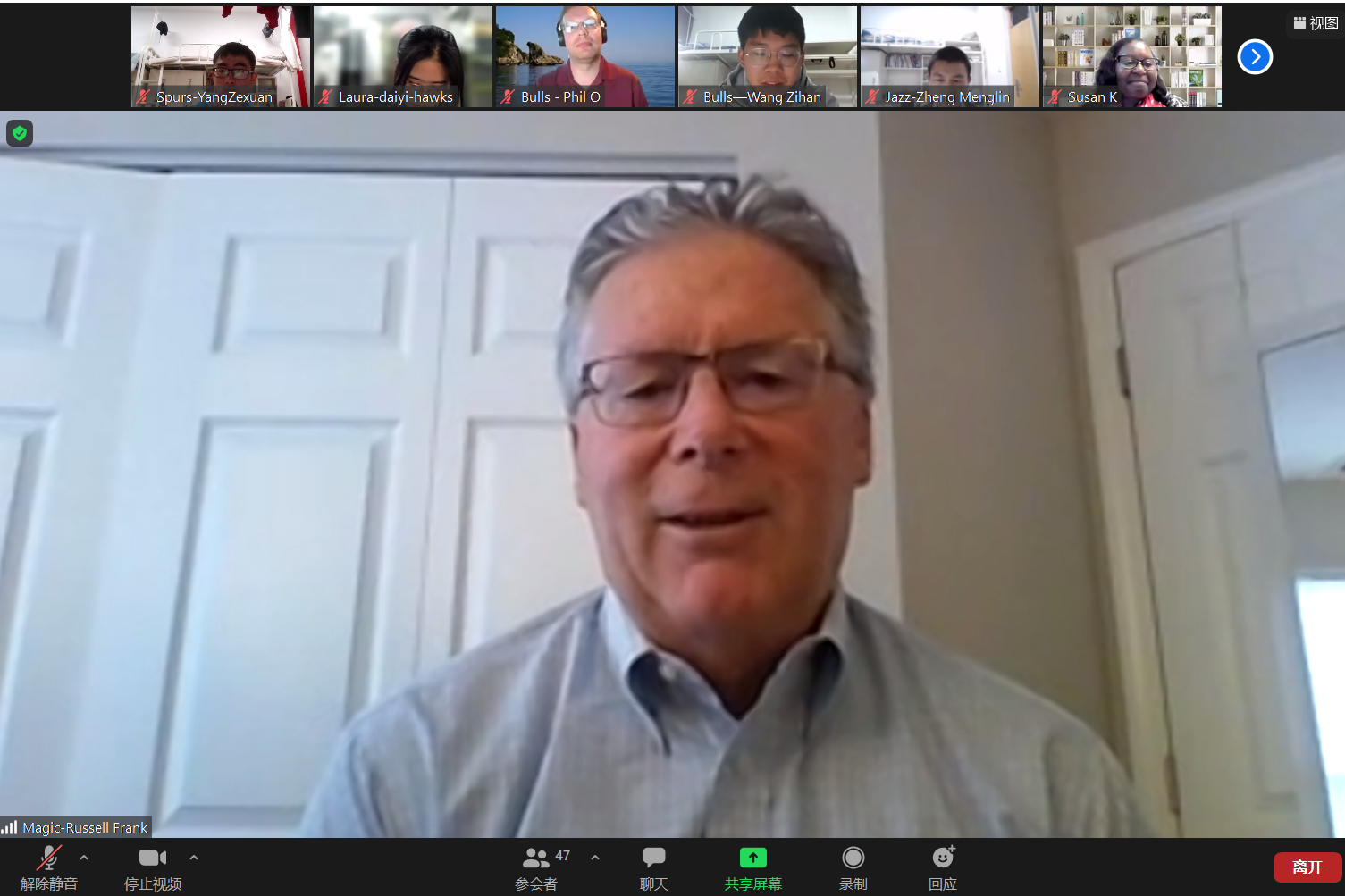 2021年10月11日,美加墨世界杯官方网站精心组织的领导力(Leadership)全英文课程以线上的方式顺利开课。该课程邀请了Russell Frank和Michael Wiltse等多位国际企业高管作为课程主讲人。共有39名同学参加本课程,并以分组的形式进行深入研讨。