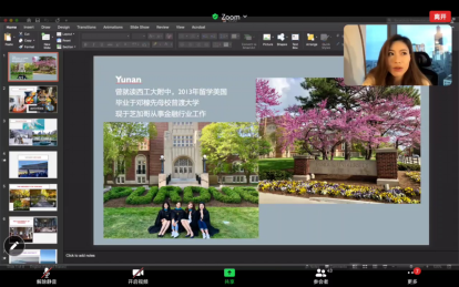 随后,目前正在芝加哥工作的施雨楠和同学们分享了自己在芝加哥的学习和生活经历。她回顾了自己留学期间的学习情况以及所参与的各类活动,分享了留学过程中的有趣经历和感受,让同学们对海外求学有了更为生动且直观的理解,激发了同学们去海外名校深造的兴趣。